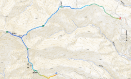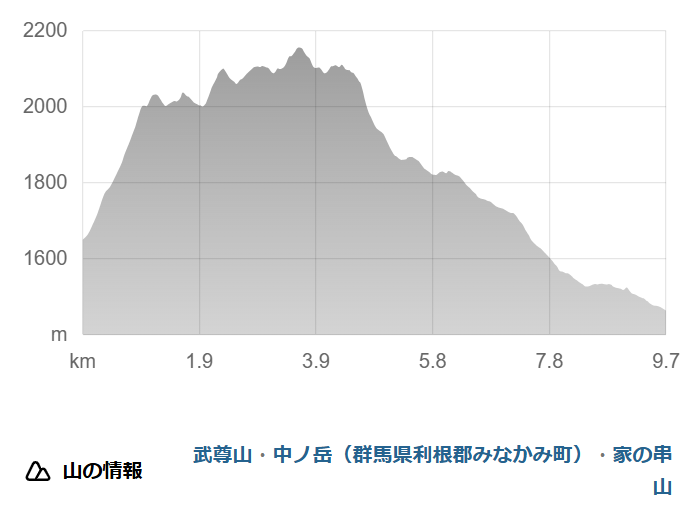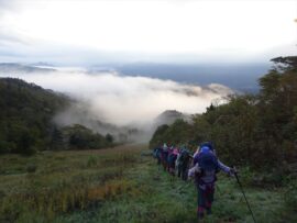 6日:宿出発 05:40=オグナスキー場 06:10→登山口 06:30→前武尊 07:50→家ノ串山 09:00→中ノ岳 10:00→武尊山(昼食) 10:40~11:10→中ノ岳 11:40→セビオス岳 13:10→武尊避難小屋 14:00→武尊牧場キャンプ場 15:00=上毛高原駅(解散) 17:10