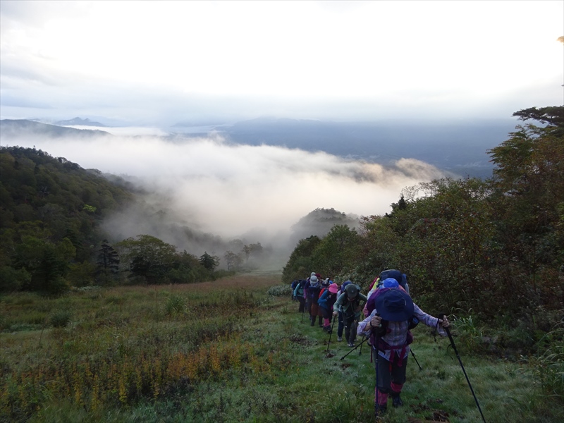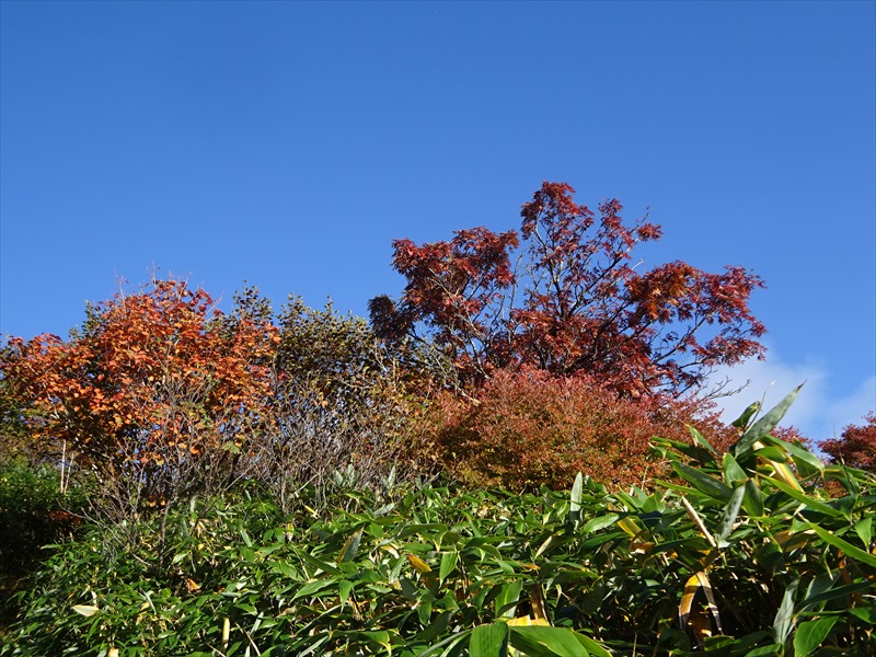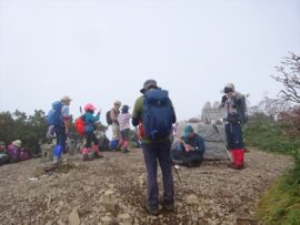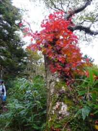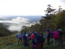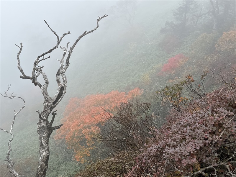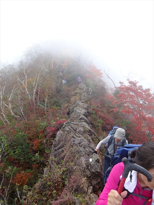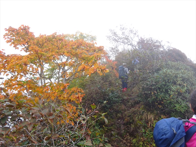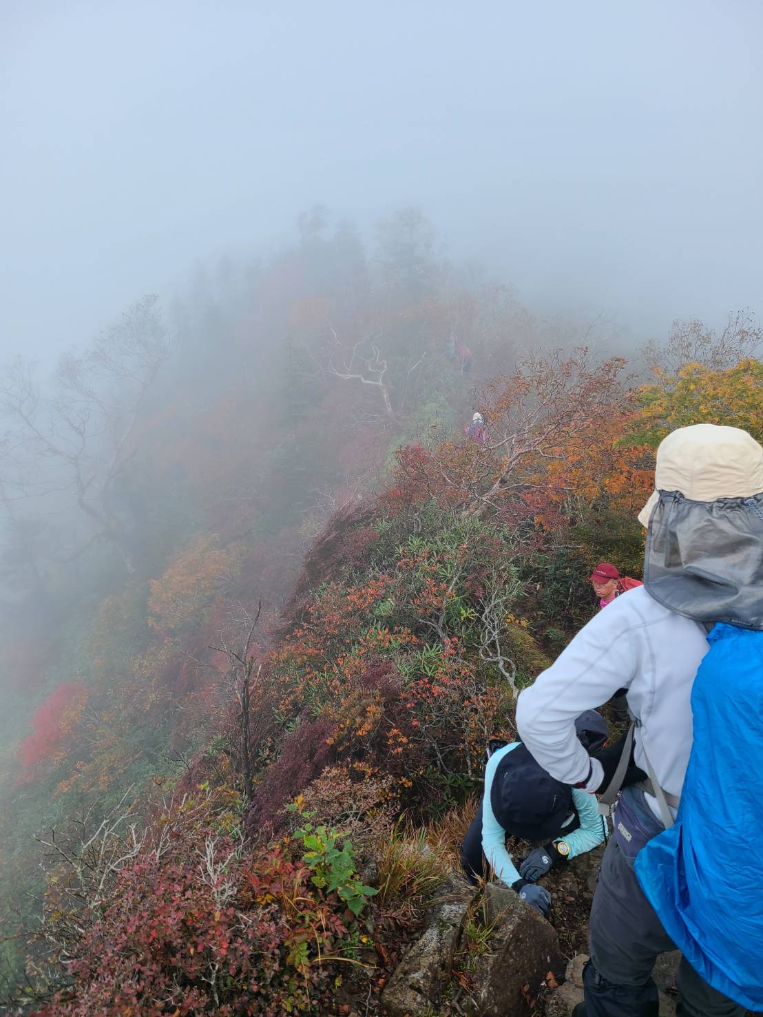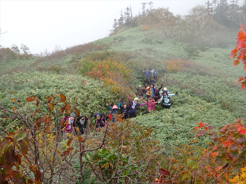 リーダーコメント:山頂では雲の中で眺望はありませんでしたが、期待していなかった紅葉が