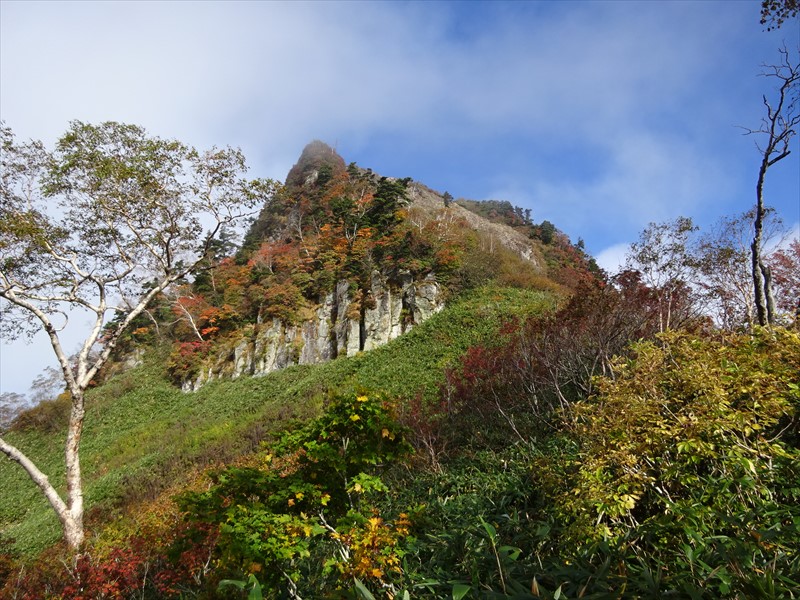 異様な川場剣ヶ峰が見えてきました、この脇を巻いていきます。