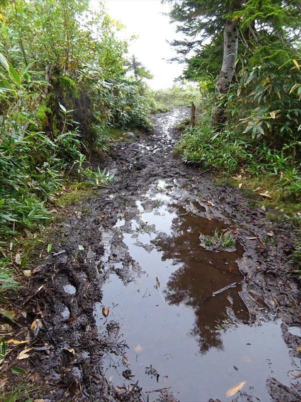 池か沼か?滑らないように歩きます。 山頂が近くなってきました。