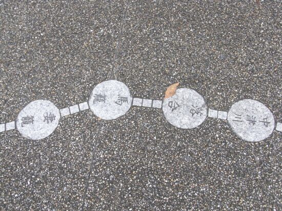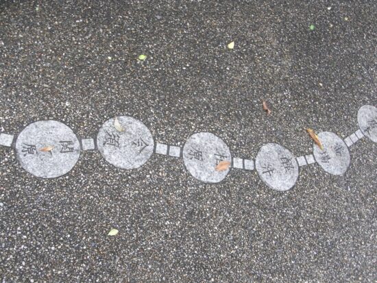 公園の地面に中山道の宿場町の経路が刻まれていました。
