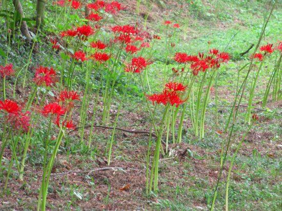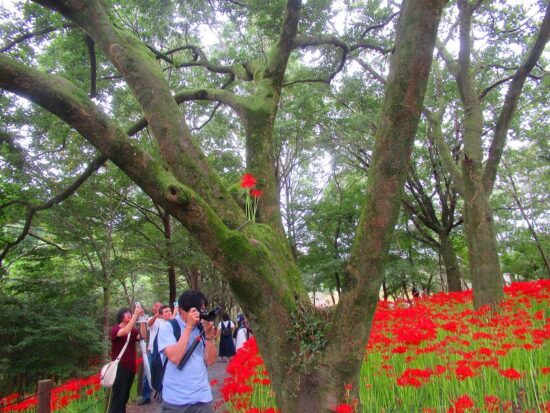 参加者の皆様お疲れ様でした。週間天気予報が曇りになったり雨になったりで前日まで心配でしたが雨は降らず、思い切って実施して正解でした。しかし、蒸し暑くて秋とは思えないような気候で汗だくになりました。曼殊沙華はほぼ満開で、まるで赤の世界に入り込んだようでした。高麗郷の歴史にちょっびり触れながら最後まで楽しいウォーキングができました。暑い中のご参加に感謝いたします。ありがとうございました。