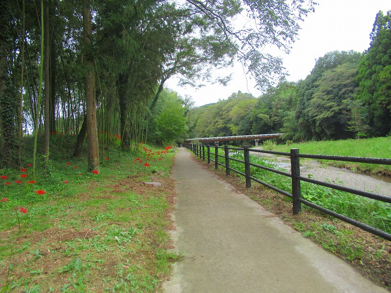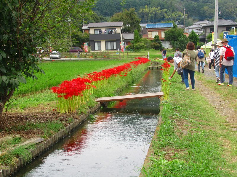 あいあい橋 いよいよ巾着田です。橋の上から曼殊沙華が多く見られました。