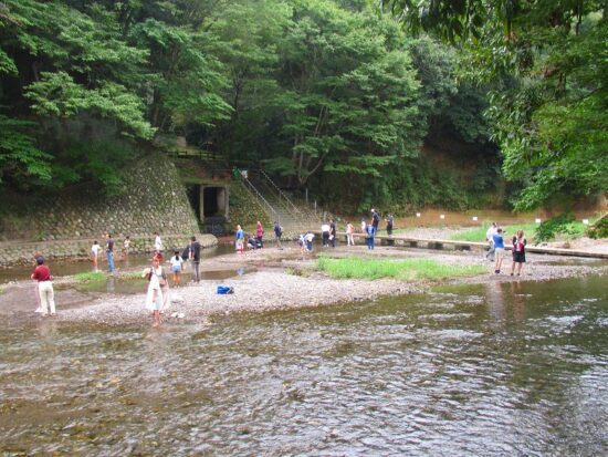 この日は蒸し暑かったのでドレミファ橋付近で川遊びの人もいました。