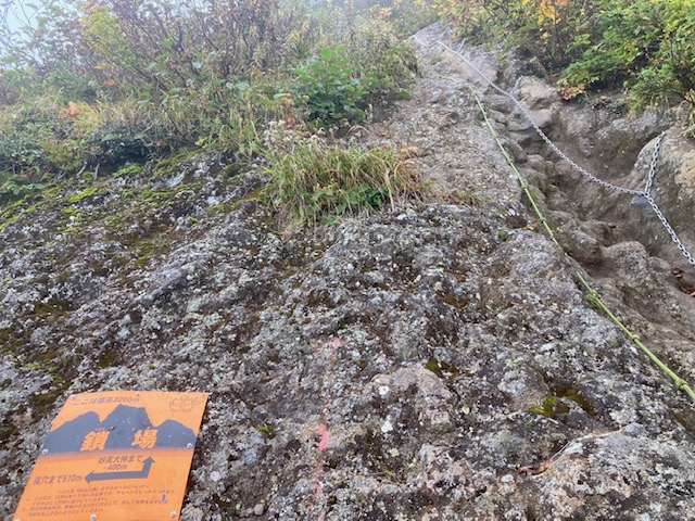 黒沢池分岐からは沢筋の大きい岩が広がる急登をゆっくり登り妙高山山頂へ。山頂からの展望は残念ながら得られない。下山も岩場を慎重に降りる。鎖場を通過して天狗堂から胸突八丁と呼ばれる急坂を慎重に燕温泉に降りた。22年前に歩いたコースが鎖場だけは記憶にあるが後は全く覚えていない!