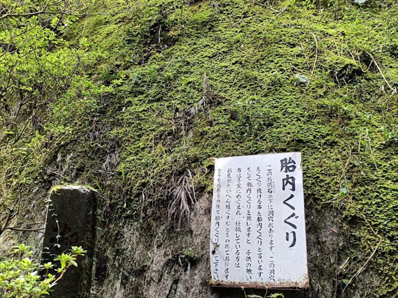 巨石群の胎内くぐりの入口の説明文