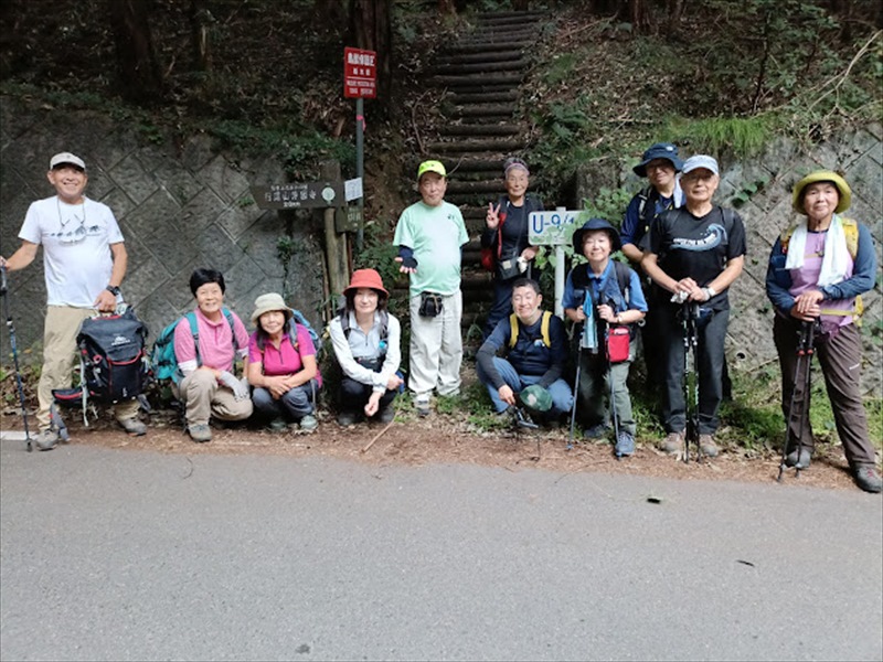 天気予報は、全国的には雨であったが、足利市の天気予報が曇りのため実施する事にしました。参加者は、雨模様のため少ないと予想していましたが、自分の山行としては多く参加していただきました。足利行道山の登山道は、名草巨石群から織姫神社まであり、歩行時間が約8時間かかるため今回の山行は、名草巨石群から行道山」浄因寺まで約4時間として、来月11月に行道山」浄因寺から織姫神社約4時間までを計画しました。少しの雨を覚悟していましたが、山行中は心配していた雨に振られることなく、和気あいあいと全員、楽しく歩くことが出来ました。参加者の皆様のご協力感謝申し上げます。