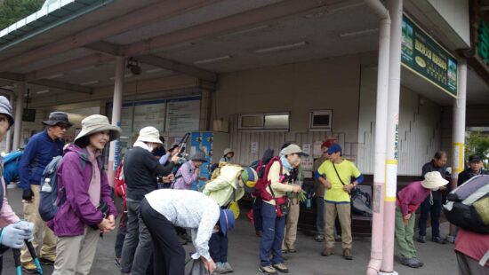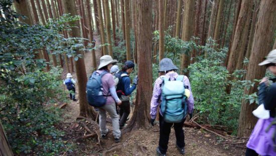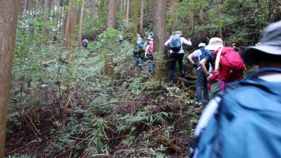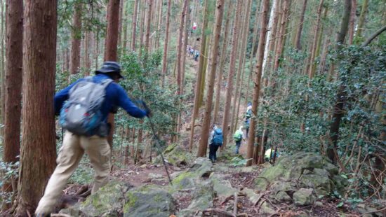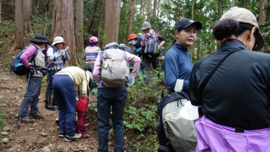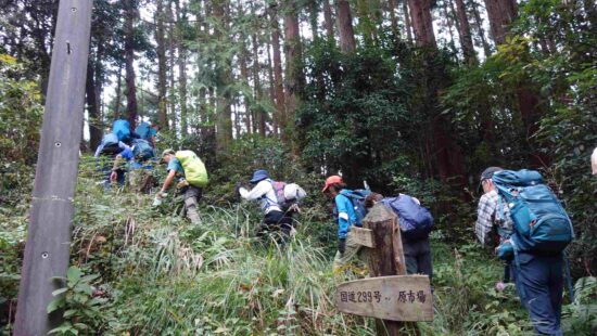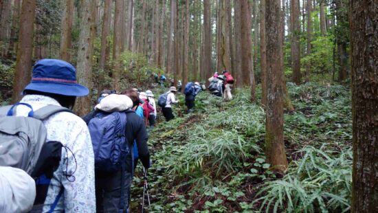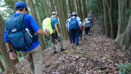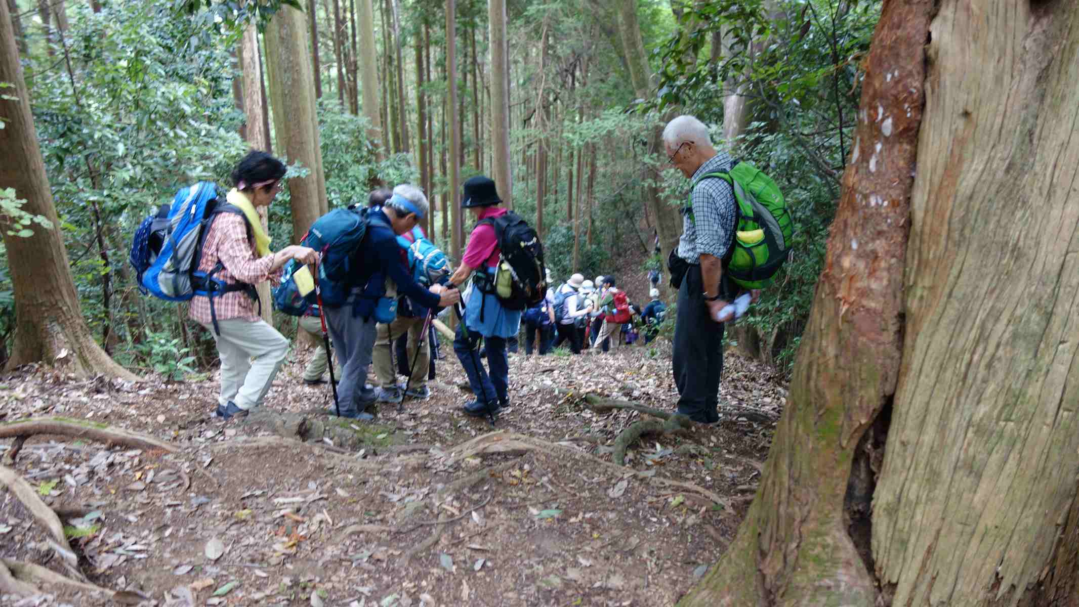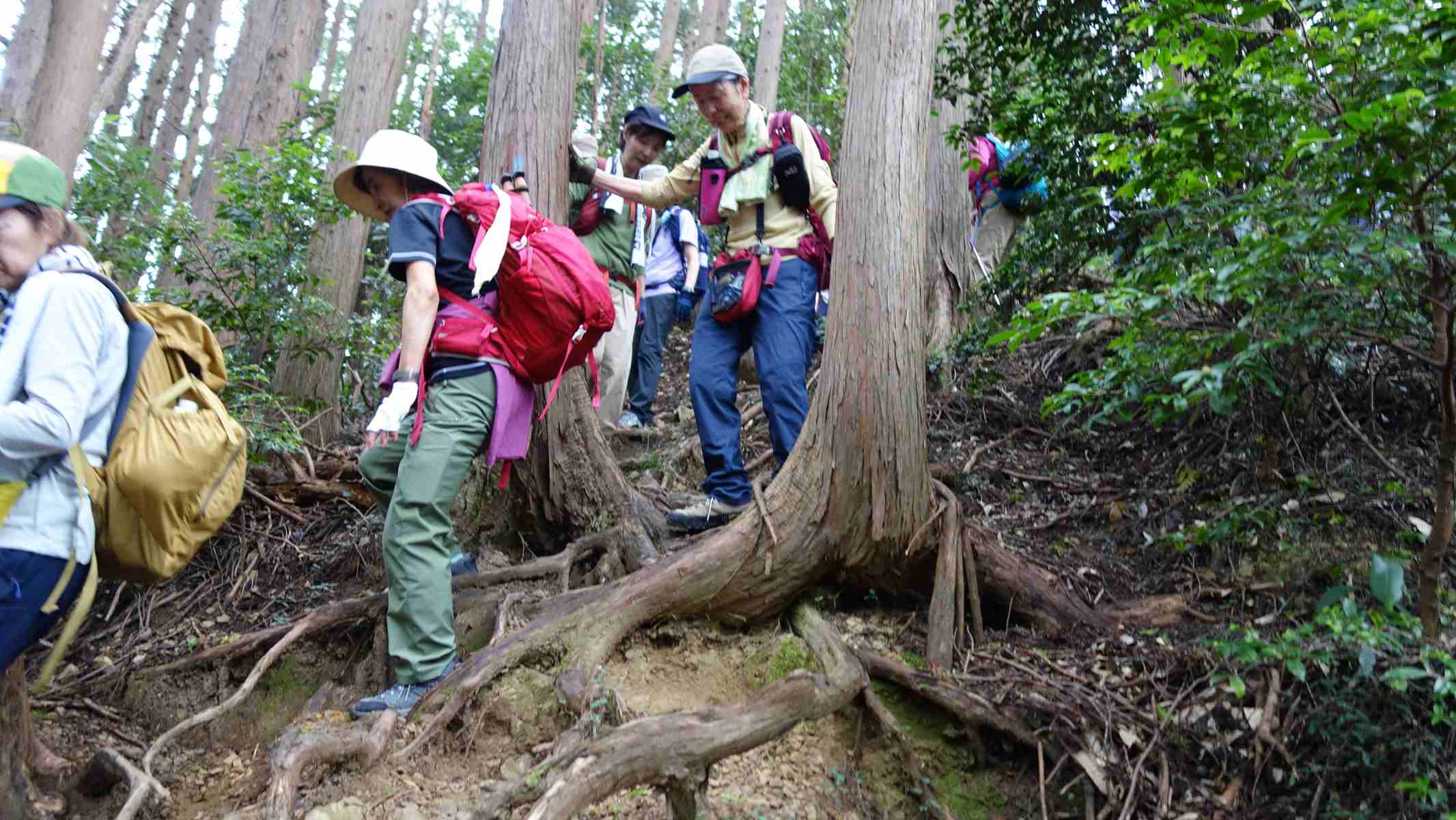 不安定な天候が続く中、心配な空模様でしたがありがたいことに雨に降られることなく歩くことが出来ました。大高山~天覚山への尾根道は、滑りやすい急なアップダウンが多く40名の参加者がいましたので足並みを揃えるのが大変でしたが、現地協力者の助けを借り皆さん元気に無事下山することが出来ました。参加された会員の皆様ありがとうございました。 星 富士夫