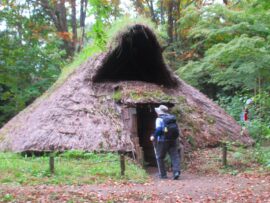 縄文時代のテーマパークで、古代の生活を体験できる施設です。竪穴住居が展示されている遺跡庭園と土器が展示されているホールがあります。