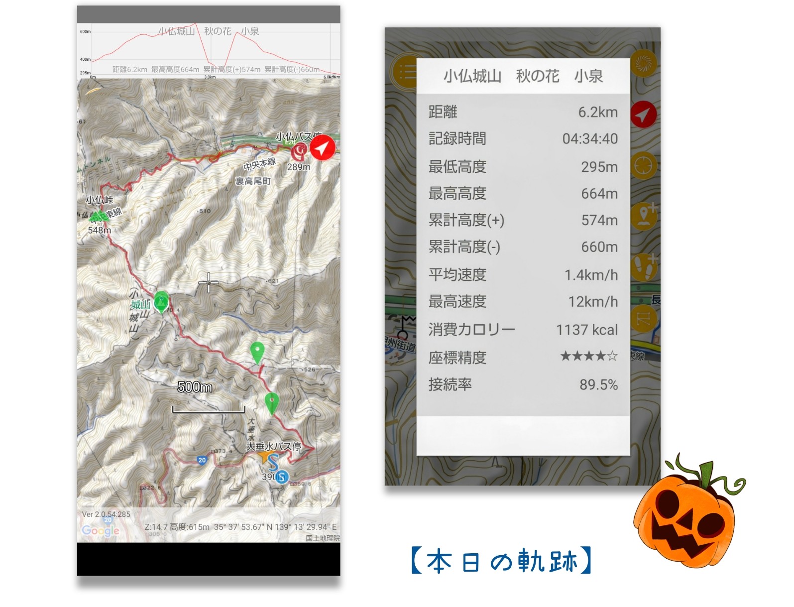 12:40→小仏城山13:20→小仏峠14:25→小仏バス停15:20