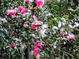 もうサザンカ? バスはピッタリジャスト。高尾駅前で解散。 (^^♪ ♫ ♪