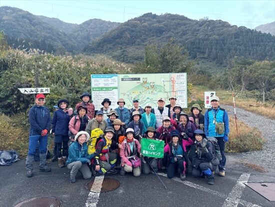 この時期には珍しく台風が発生してしまい、山行を実施できるのか、悩みましたが、2日目以降の天気予報が晴れ一色に変わり、実施を決断しました。風雨が強い中、伊吹山ドライブウェイを通過、山頂に立つことができ、また、申し分のないお天気のもと、荒島岳登頂、越前大野、永平寺の観光も行うことができ、充実した3日間を過ごすことができました。いつもながら、共同リーダー、参加リーダー、協力者、参加者の皆さんが協力してくださったことに感謝申し上げます。お陰様で全員怪我をすることなく、無事、家路に就くことができました。ありがとうございました。