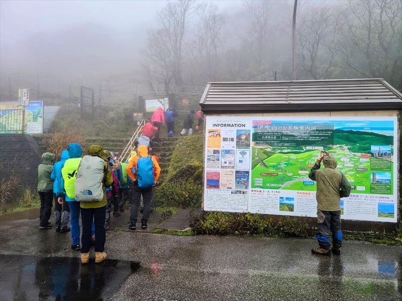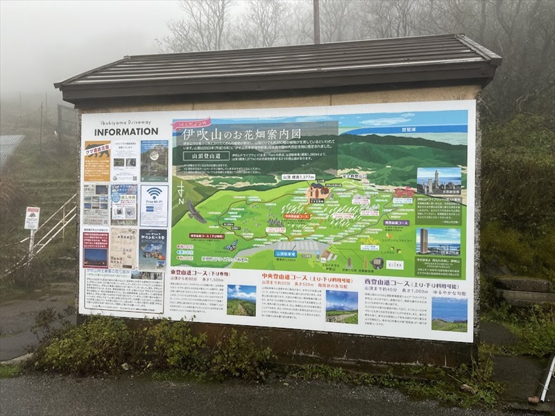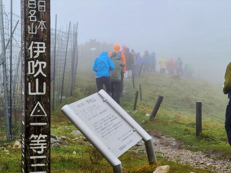 米原駅に集合。ここから貸切バスに乗り、伊吹山ドライブウェイを通って伊吹山山頂駐車場に向かいました。