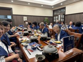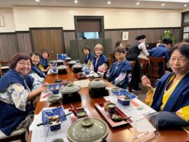 荒島岳に登頂できたご褒美の御馳走に、皆さん笑顔いっぱいです。
