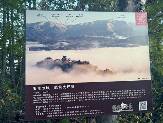 城下町大野のシンボルである越前大野城(織田信長の家臣・金森長近が築いた平山城)も見学できました。