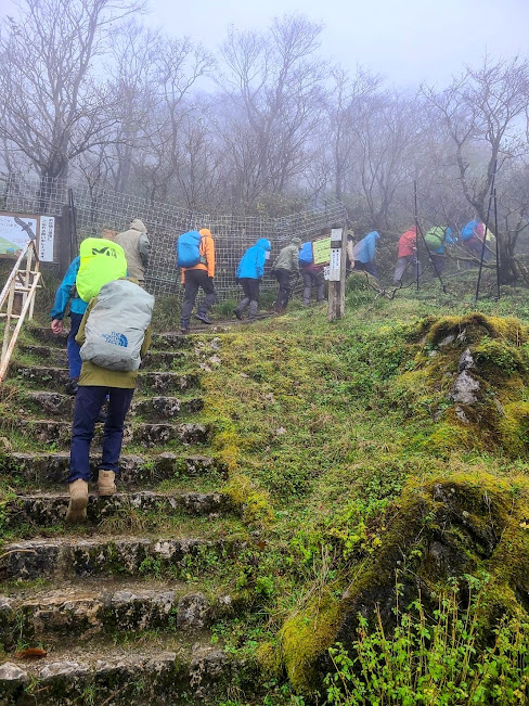 風雨共に強かったので、歩行距離、時間が一番短い中央登山道コースを登っていきました。