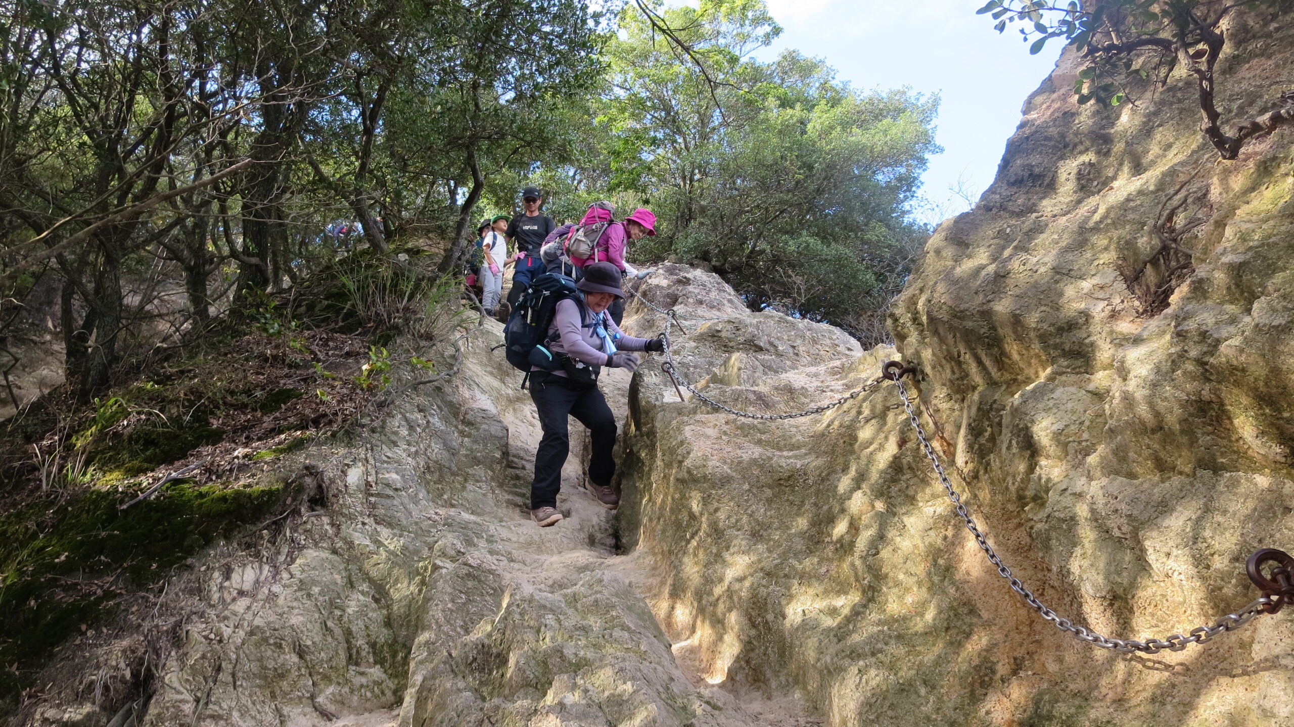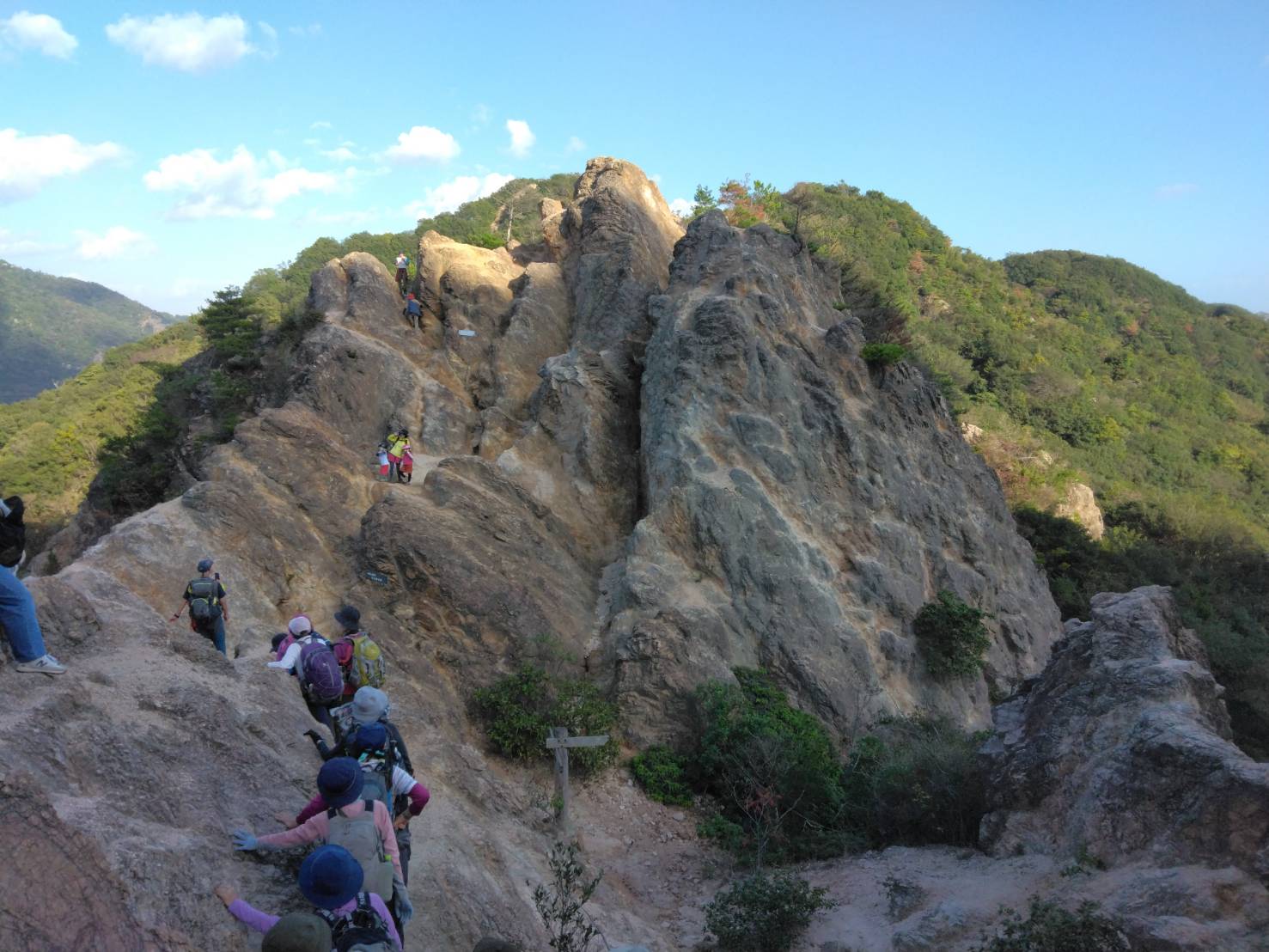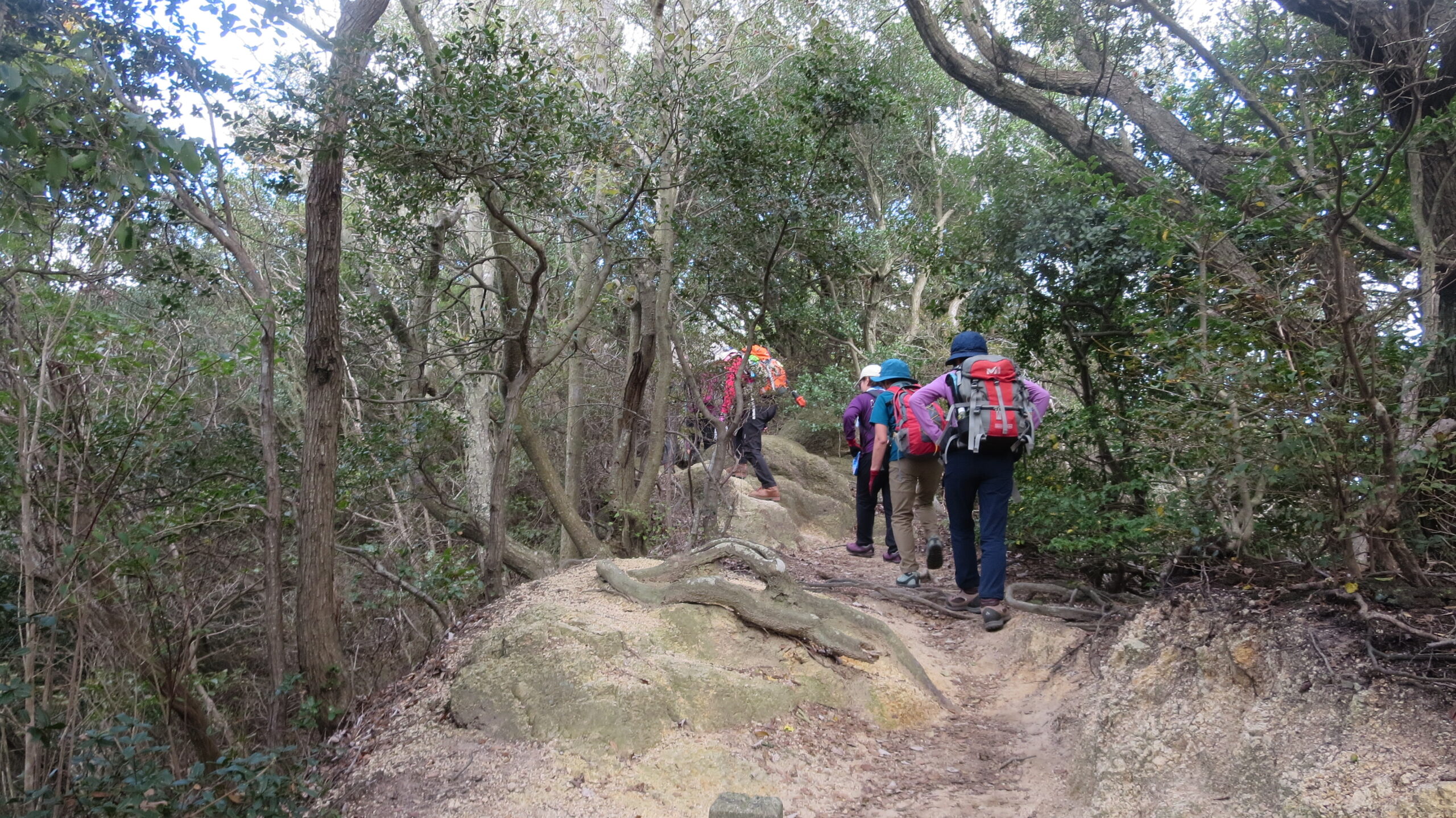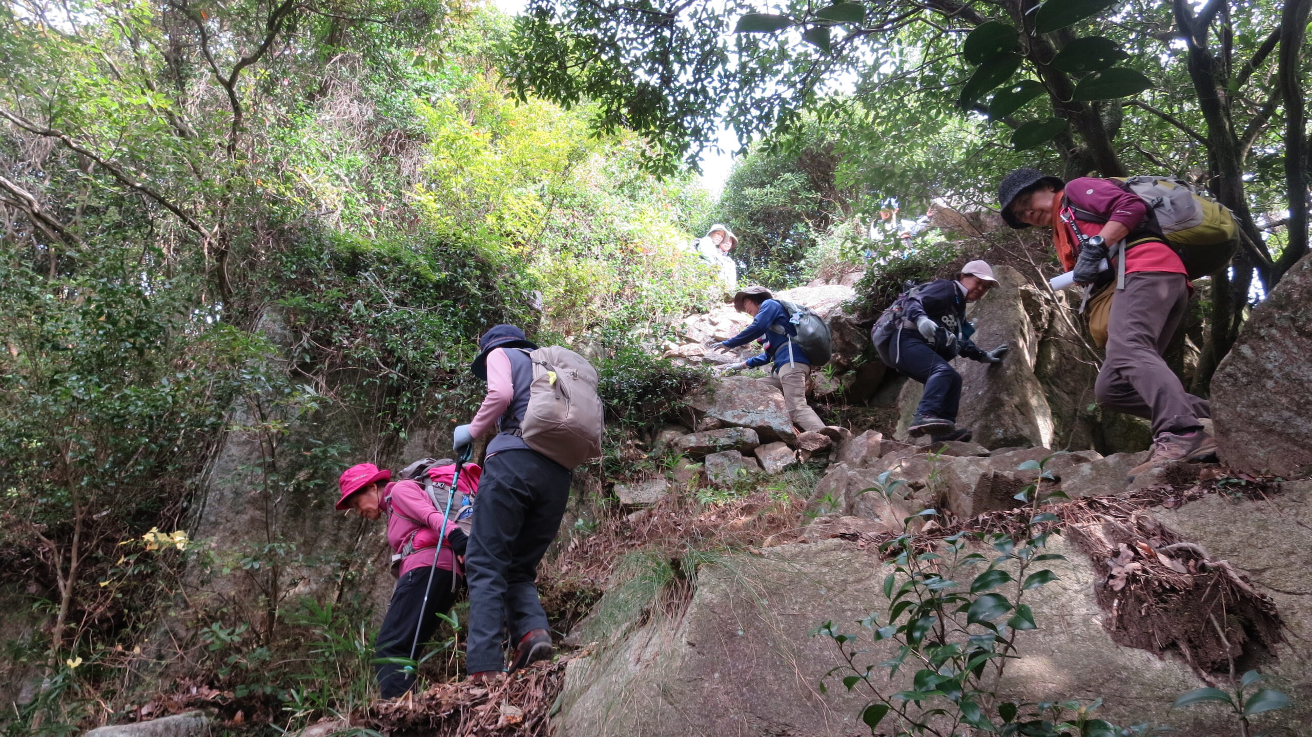 ▲今山行は、昨年摩耶山→宝塚駅まで歩いたので今回は残りの西半分の摩耶山→鉢伏山間約27Kmを歩く予定も妙法寺駅→鵯越駅間約6Km(上記軌跡図の軌跡線のない部分)は次回に持ち越し❓ となる(が、3日目に歩いた猛者がいました)。全体に天気に恵まれ青空の下、薄く汗をかきながら南に海を見て、海に浮かぶ淡路島も見られて、爽やかな気分いっぱいに楽しめました。樹林の中、急坂や岩場の連続もあって慎重に歩いた。