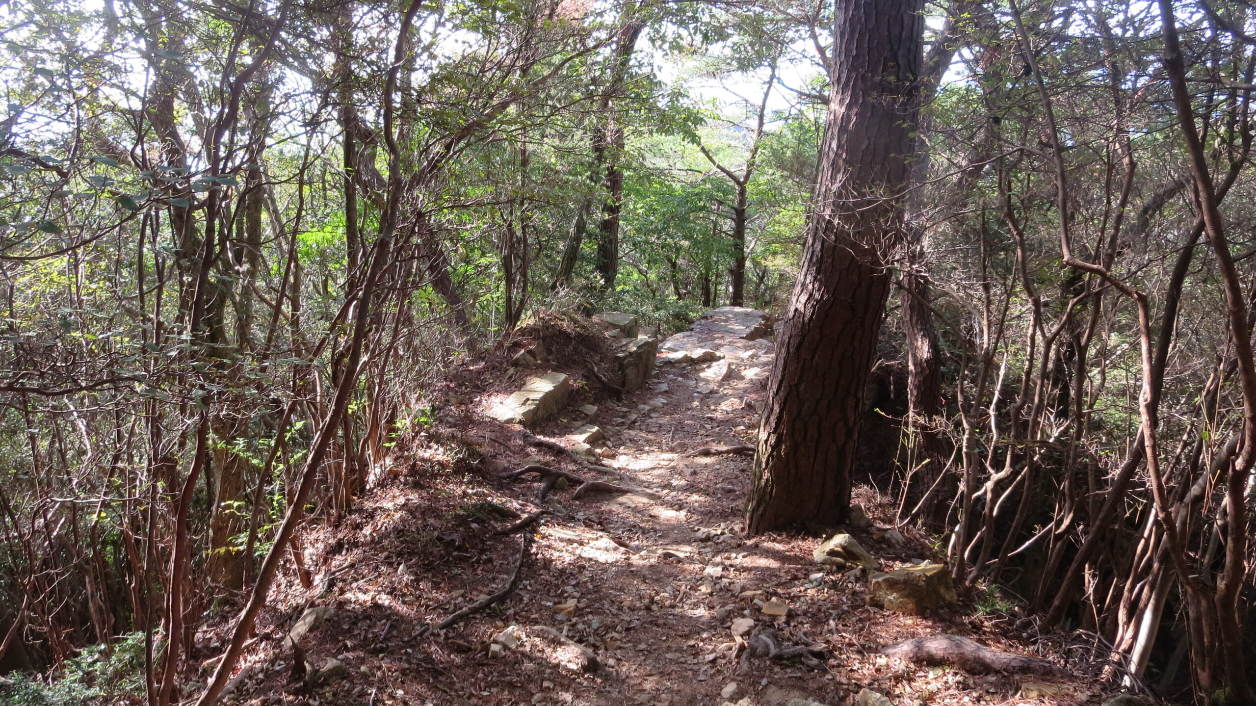 掬星台からは山道は狭く傾斜は強く石や岩がゴロゴロと多く油断できない歩きでした。全体に樹林の中で昨日のように景色を見ながらの歩きはほとんどできなかった。