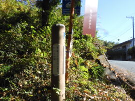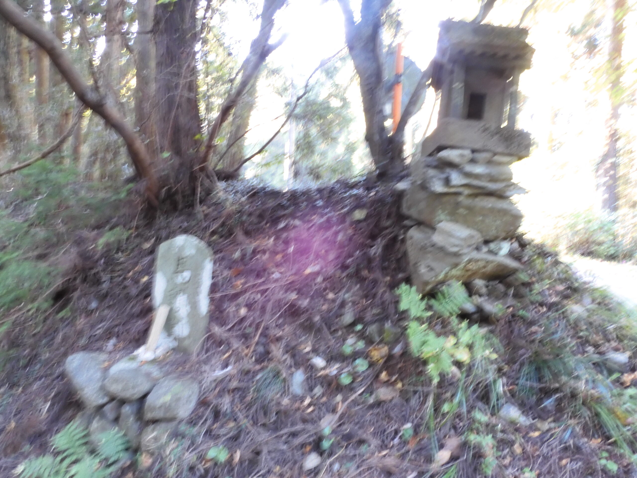 急な下り足元を慎重に降りる 馬頭観音の石碑