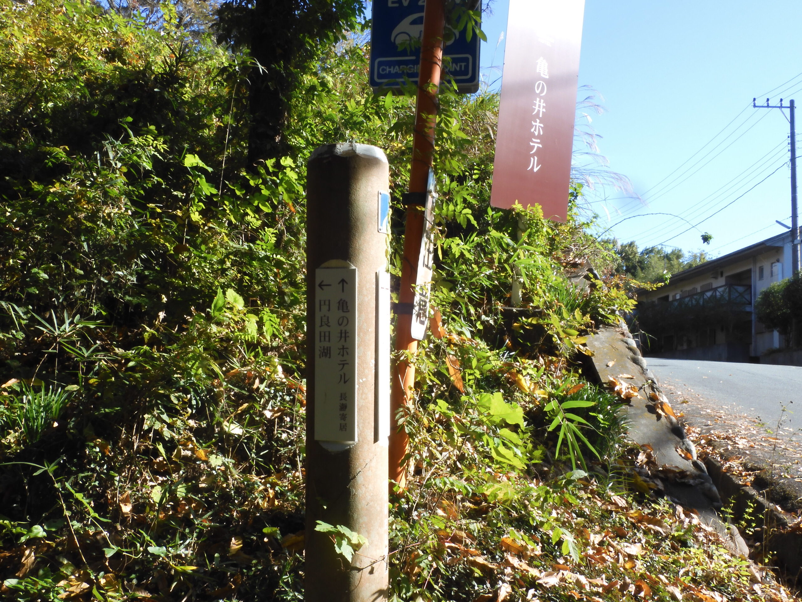線路沿いに沿って登山口へ この先は亀の井ホテル 左に円良田湖方面に