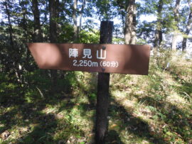低山の里山ですが急登のアップダウンを繰り返し陣見山山頂へ。歩きやすい広い登山道