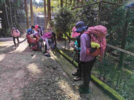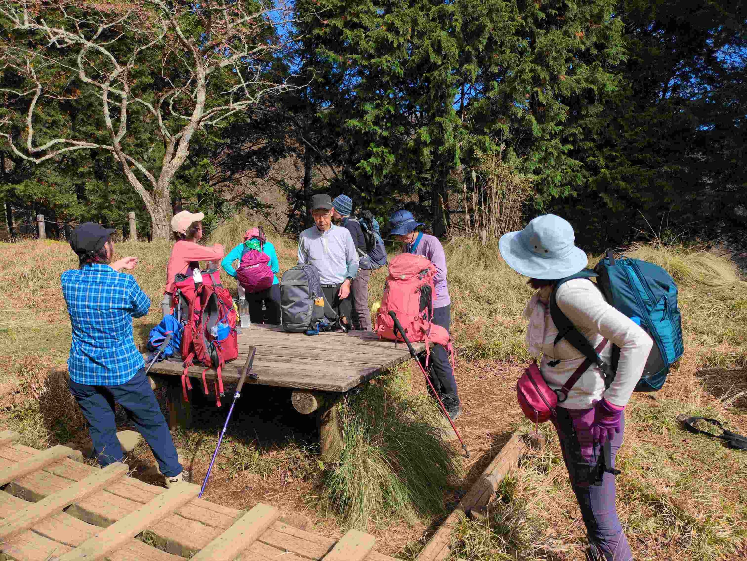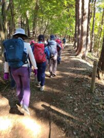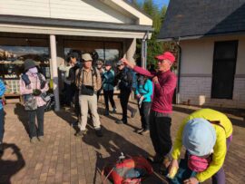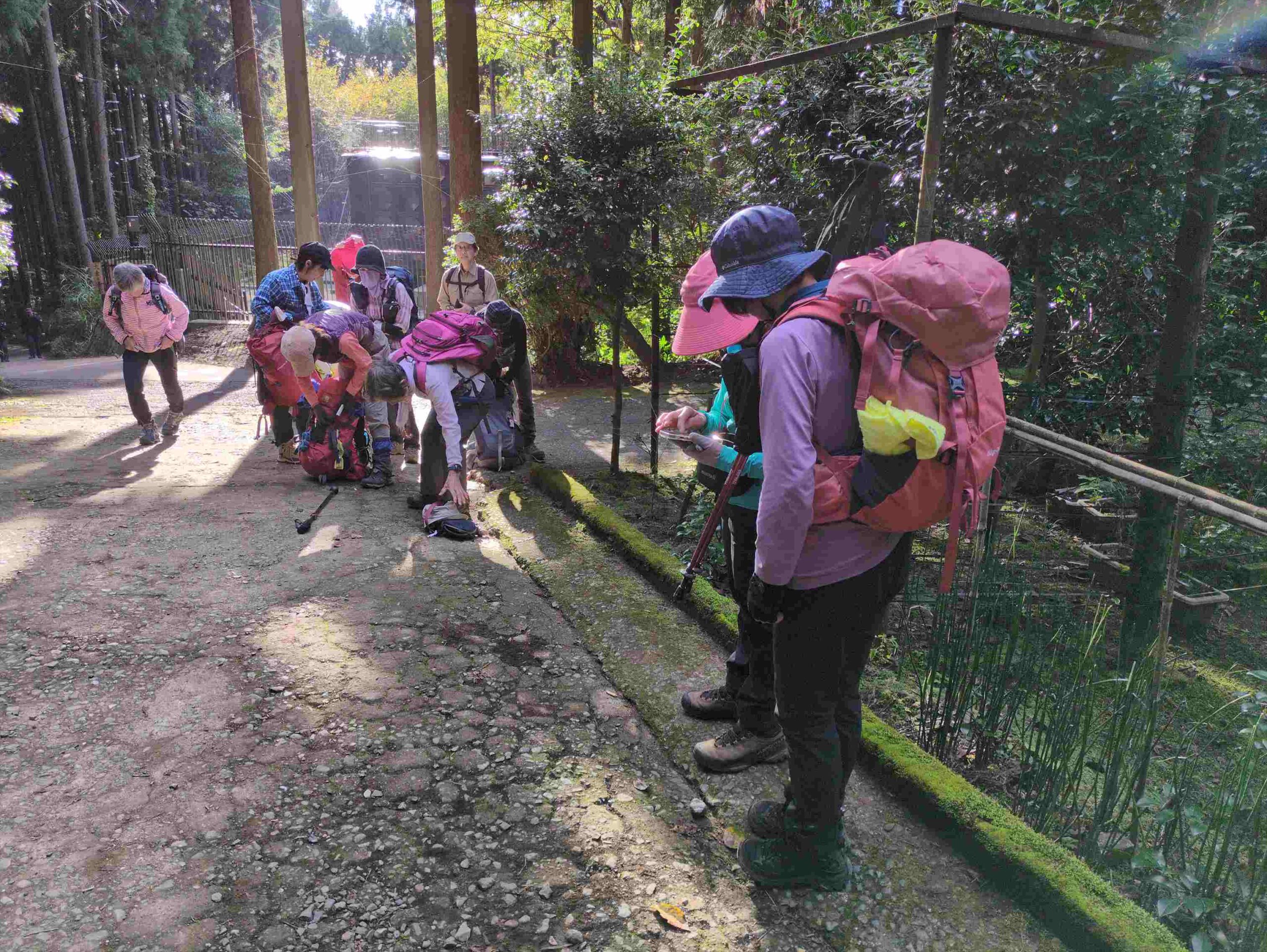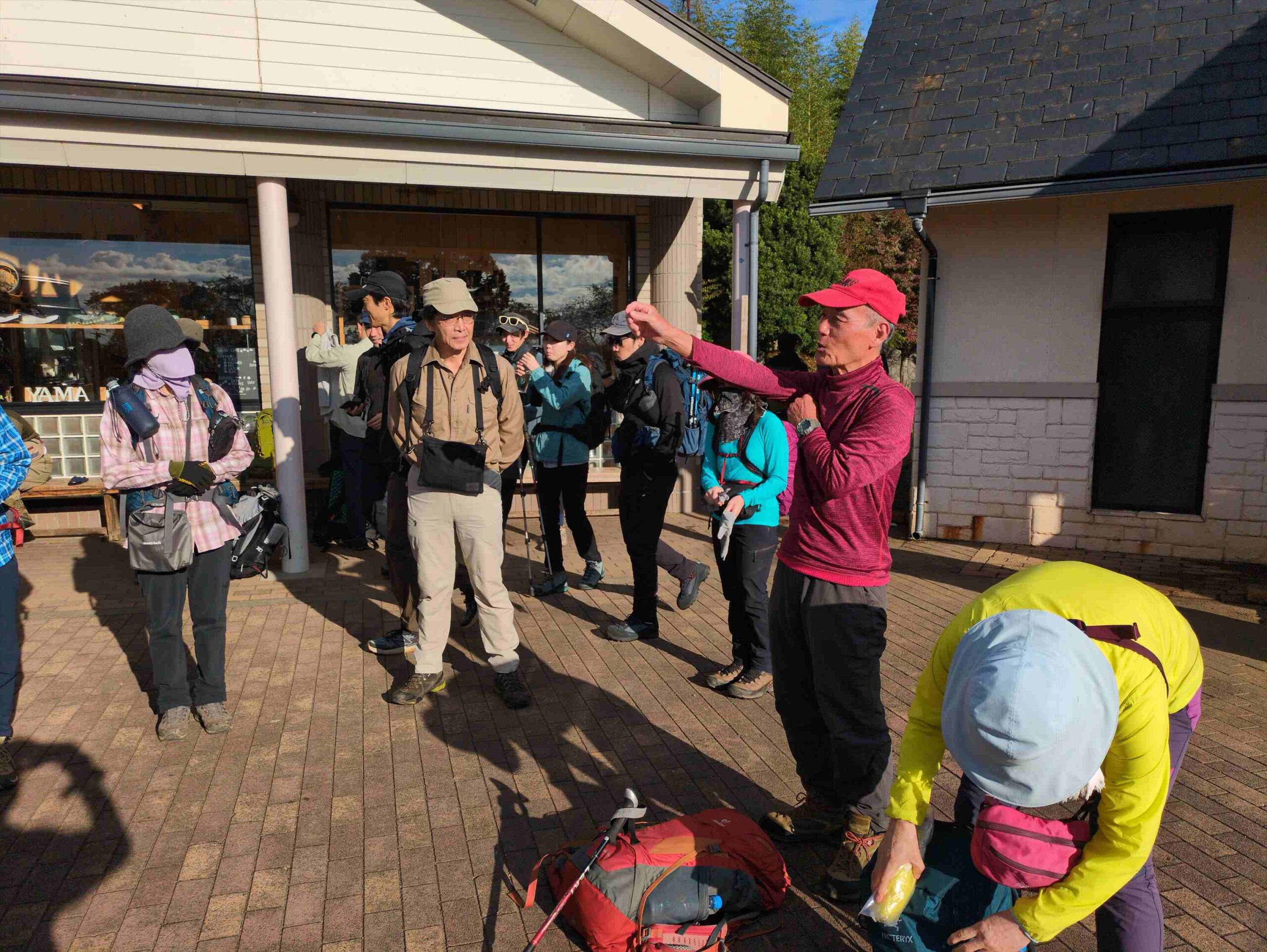 出発前のリーダーの挨拶と注意点の確認 歩き始めて、衣服調整をします