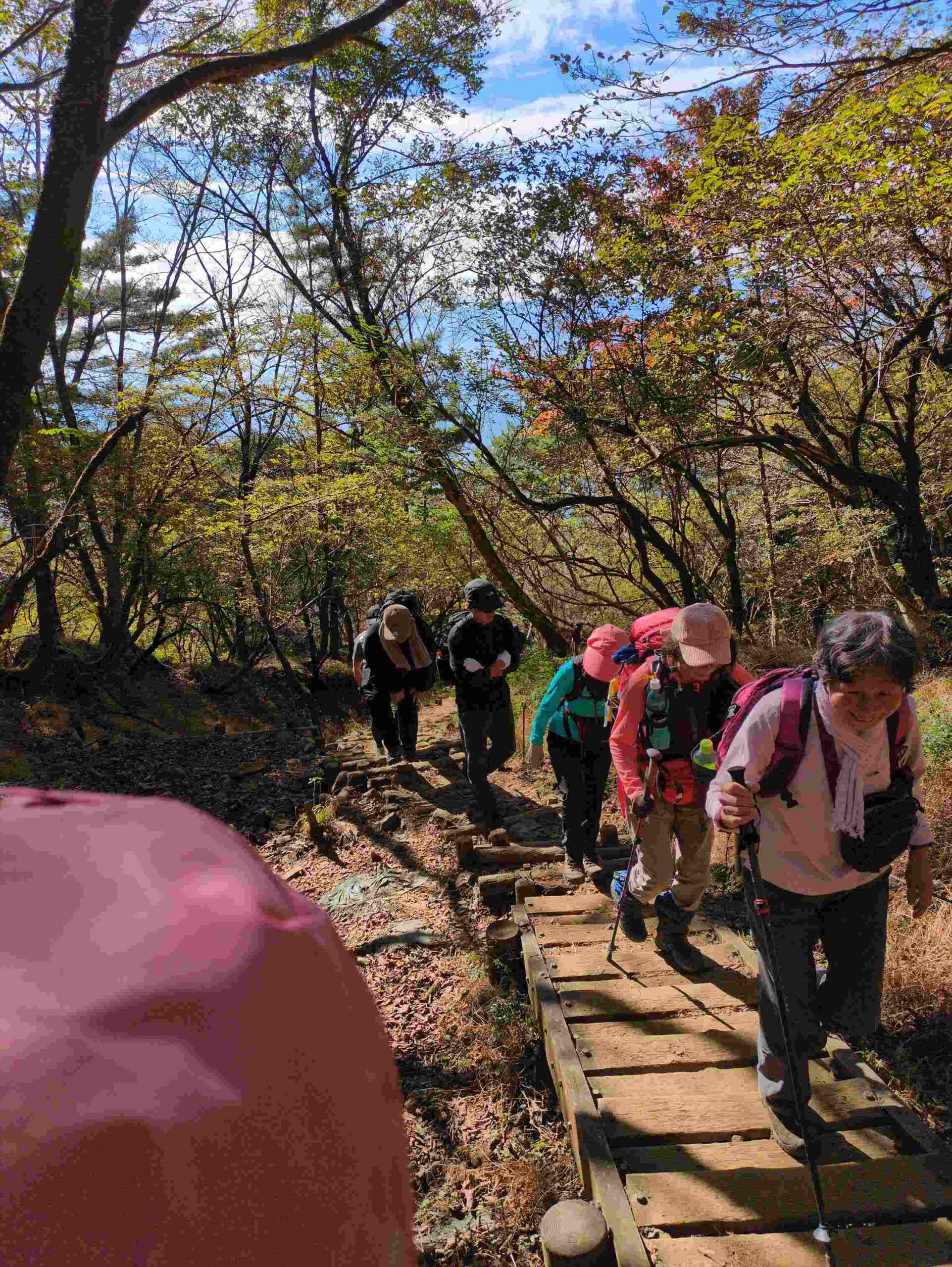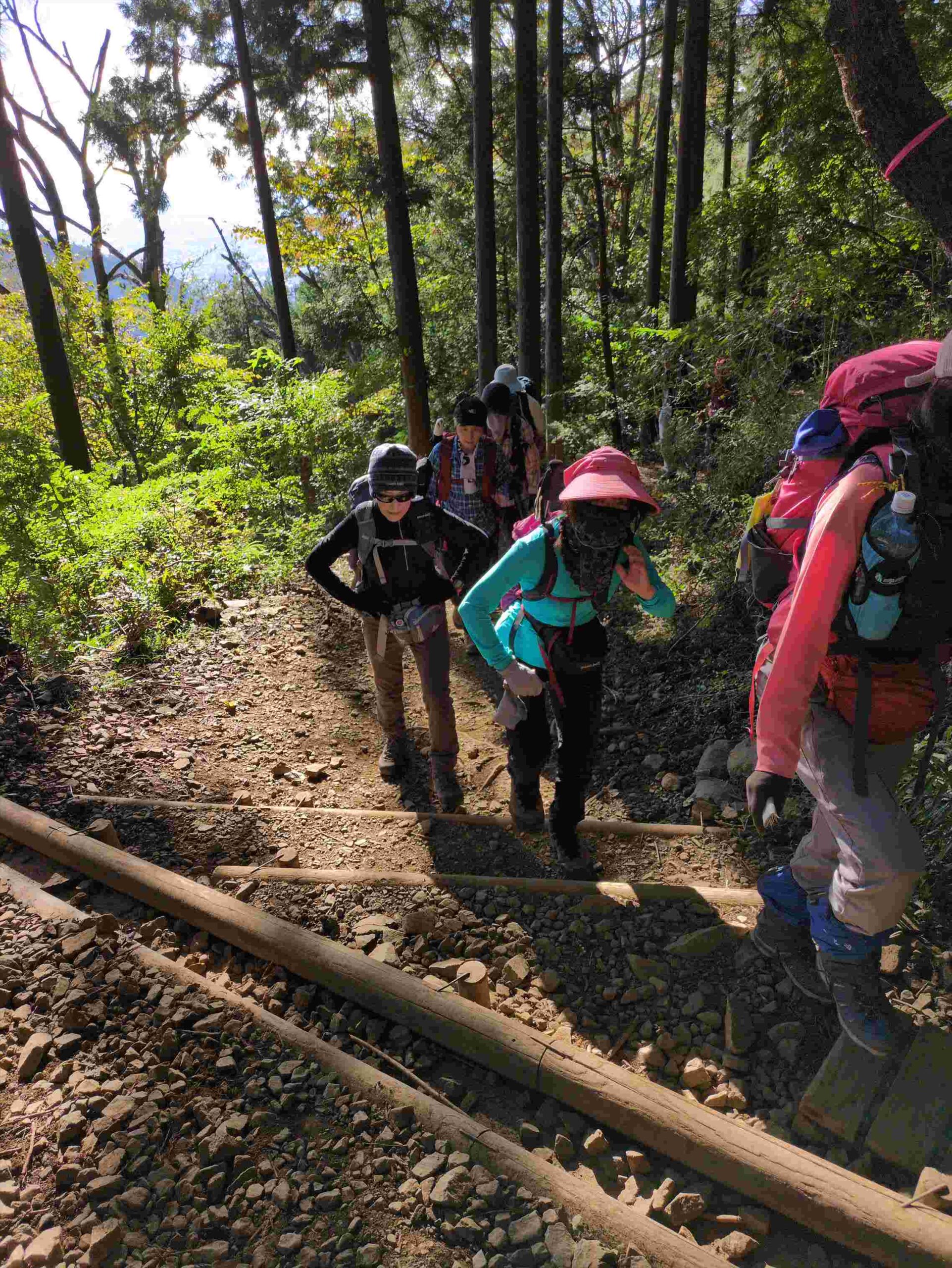 堀山の家とか駒止茶屋とか通過して、階段の道を登って高度が上がります
