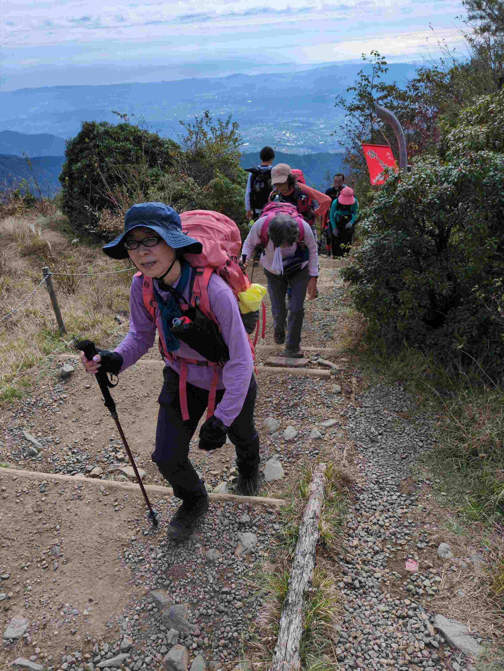 最近下見してくれた藤原さんに先頭を歩いて貰いました。お陰で、塔の岳まで久し振りに3時間30分以内で登頂できました。参加者11名の内、リーダーだけが遅れて心配をかけました。参加者の脚力に励まされ、紫の花(何とかりんどう?)に癒されて、何とか完踏できました。1月の塔の岳は登り4時間以内を目指します。