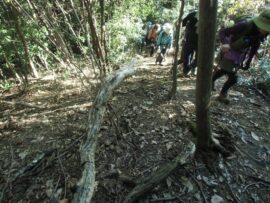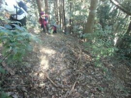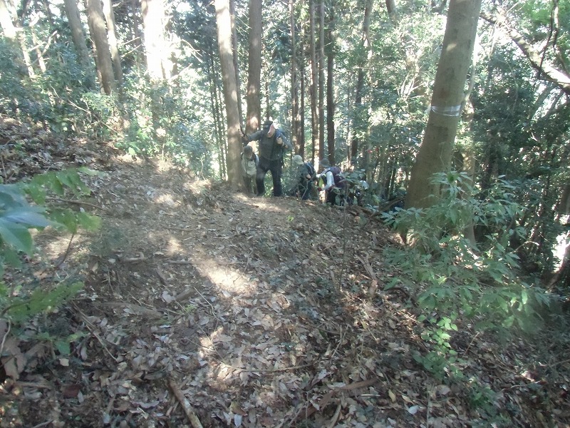 太鼓曲輪尾根は城山川に沿って東西に延びる尾根。幾つもの堀切で尾根が切り取られ敵の侵入を防ぐための陣地の一部だそうです。城山川右岸を通りましたが一部崩落個所があり注意が必要です。小春日和の中ご主殿跡での昼食は至福の時間でした。皆様のお蔭で一日楽しく歩く事が出来ました。ありがとうございました!