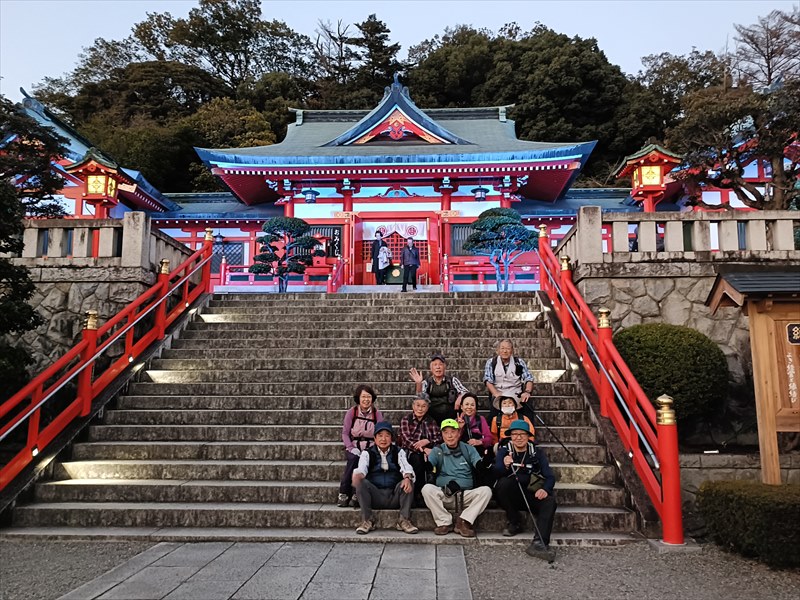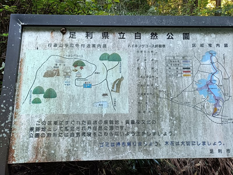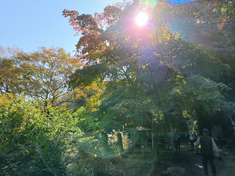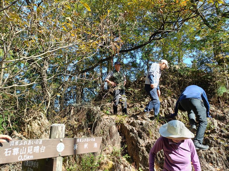 秋晴れの好天気に恵まれ、所々紅葉も見られました。足利行道山は全工程約8時間かかるため、10月催行の足利巨石群から行道山浄因寺までと今回11月の行道山浄因寺から織姫神社までと2回計画しました。今回のコースでは栃木百名山の足利行道山と両崖山2座登頂出来ました。このコースは所々に歴史的な建造物や名草巨石群や毘沙門天など観光名所もあります。また足利七福神も2か所ありました。登山道も関東ふれあいの道になっていて、比較的歩きやすく人気のハイキング道でもあります。とは言え歩きにくいところも多くあり、参加者全員怪我無く、山行中なにかとご協力頂き感謝申し上げます。