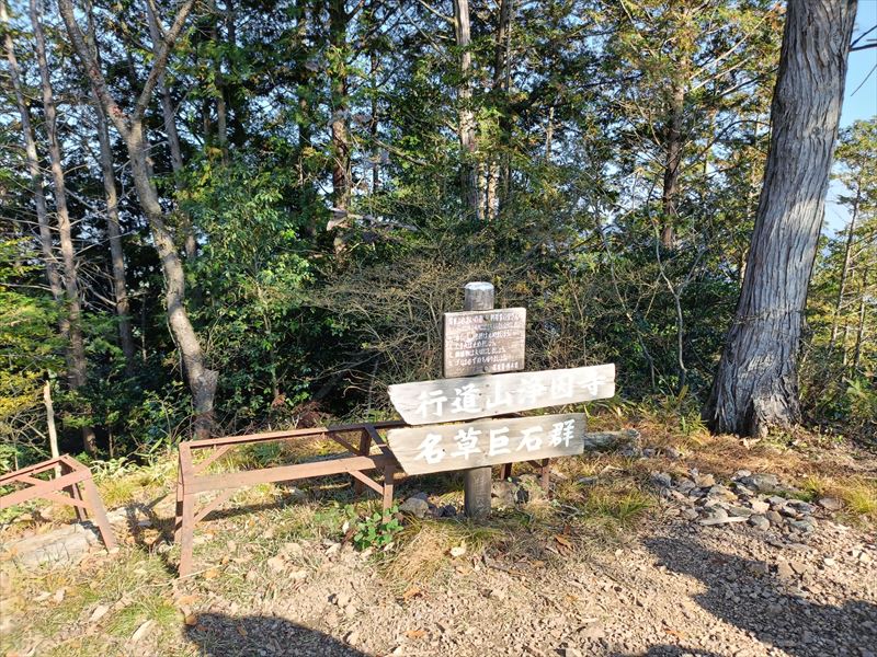行道山浄因寺から大岩山(標高417メートル)、両崖山(標高251メートル)を登る一般の方向けの首都圏自然歩道となっているハイキングコースです。