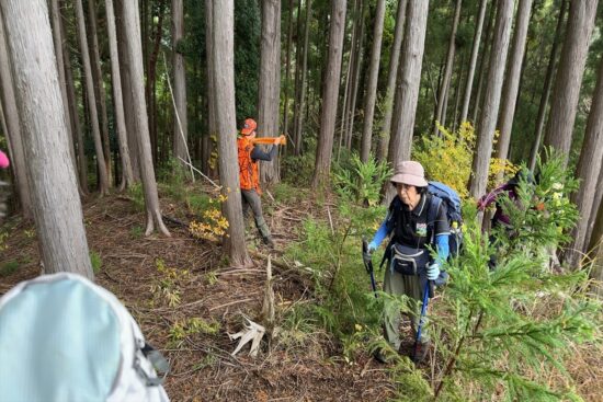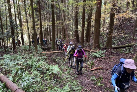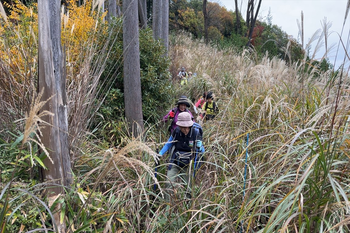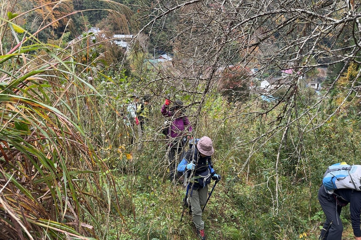 以前、先輩リーダーの山行で歩いた時より登山道が荒れていて、草ぼうぼうでした。最近はこのコースを登る人が少ないのかなと感じました。参加者からは「これは絶対に5⃣だよね。」と言われまして、会報を見ると確かに「ヤブ等のあるコース」は5⃣とあります。うーん!強弱度設定は難しい。(汗)