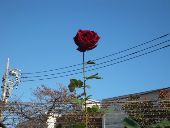 電柱より高いバラ?(都電沿線はバラでも有名です)