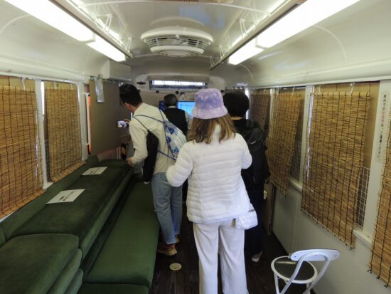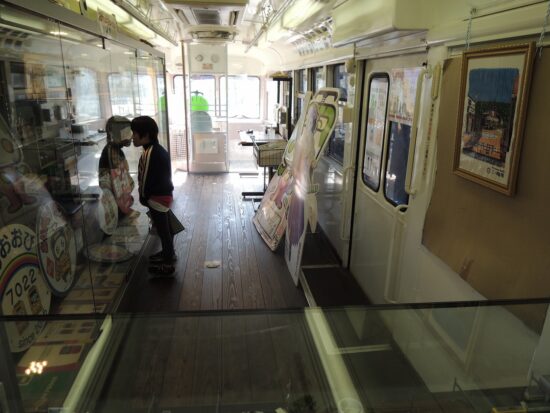 広場には、懐かしい停留場をイメージしたスペースに貴重な都電の旧型車両2両が、車内には都電の昔懐かしい写真が展示されています)