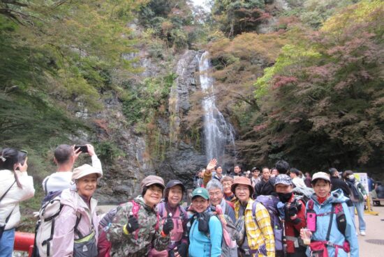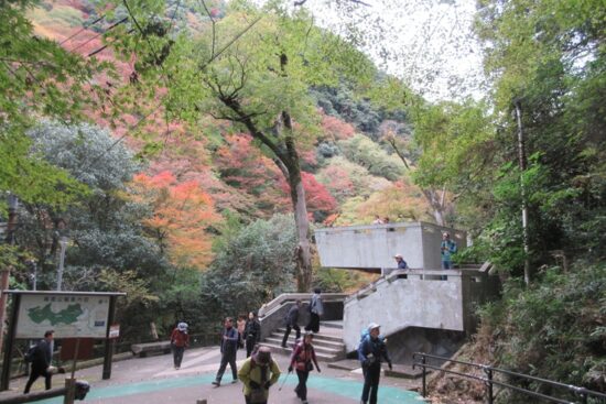 コース:石道口バス停=川西能勢口駅=箕面駅 歩行開始 9:05 → 箕面大滝 10:20 →