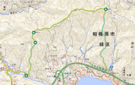 ▼コース : 駅 09:30→取付点09:50→大久保山 10:30 →テシロ 11:00→吉野矢ノ音 11:20(昼食~11:50)→イタドリ沢の頭 12:25→大沢の頭 12:45→藤野駅(解散) 13:50