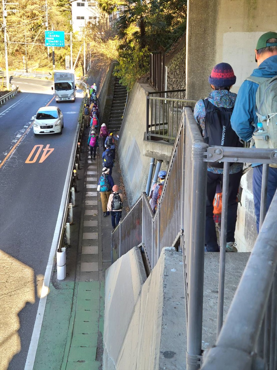 衣服調整の後、急坂に向かいます。 相模湖が見えてきました。