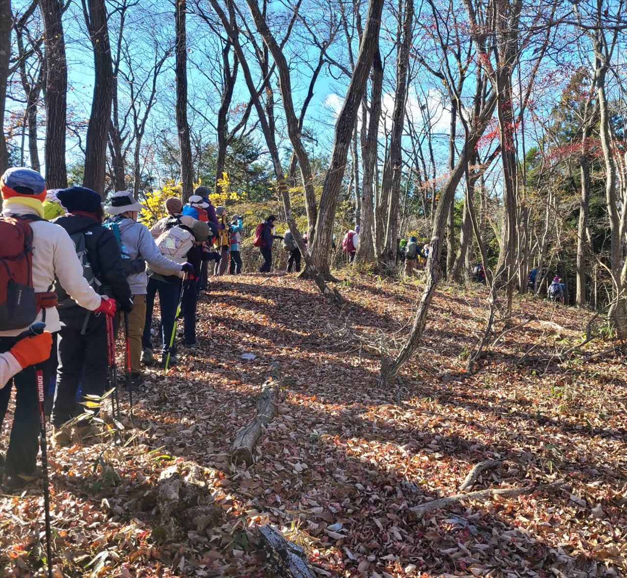今回の山行は冬の季節を感じながら皆さんの明るい笑顔と明るい話し声で楽しい山行となりました。参加者の皆様、参加リーダー、協力者のお陰で今年の最後の山行でしたが、