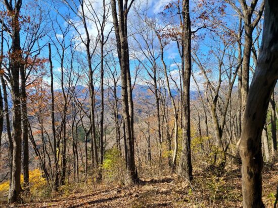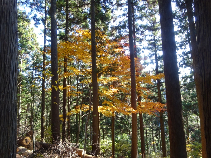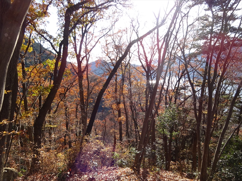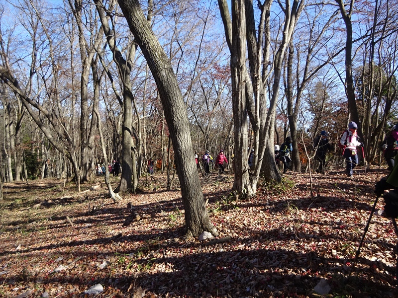 陽の当たる尾根道は暖かく、落ち葉で歩きやすく楽しい気分。