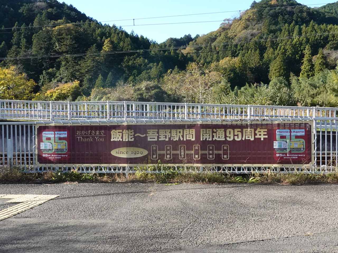 武蔵横手駅に飯能~吾野駅間 開通95周年の看板