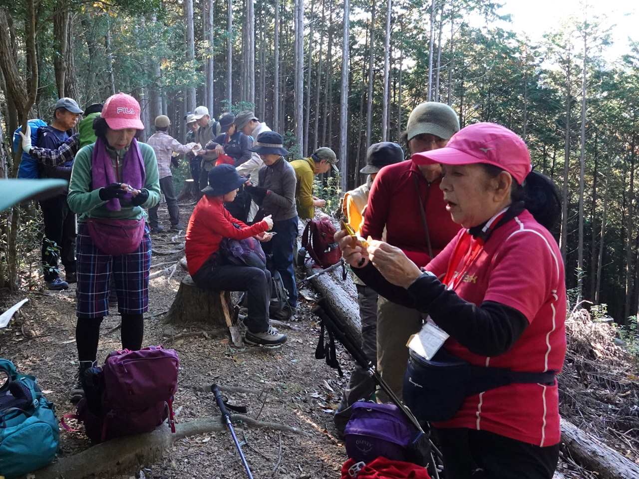 スカリ山登山口手前の陽当りの良い場所で昼食タイム