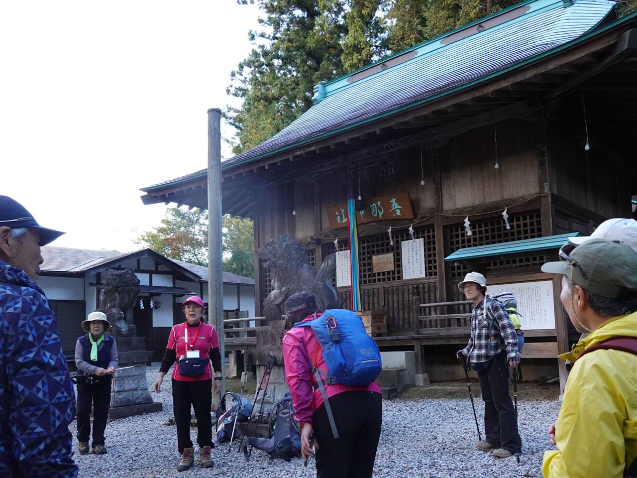 吾那神社で全員無事確認ごリーダー挨拶