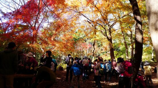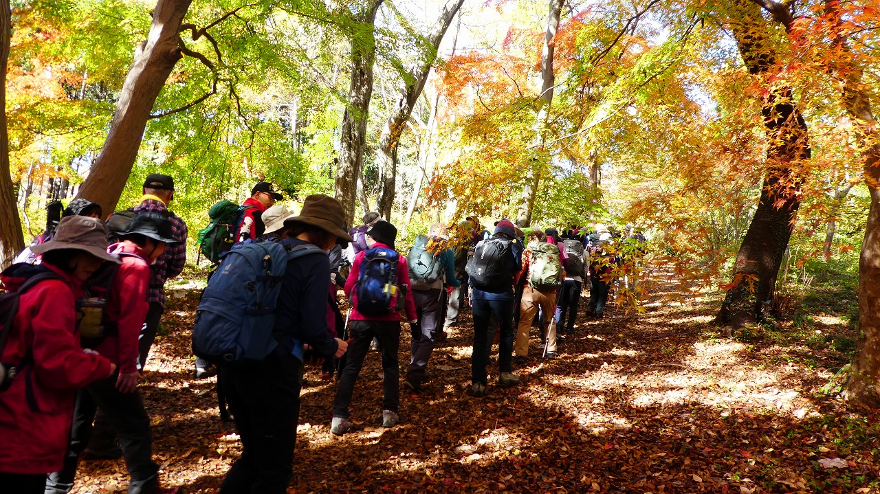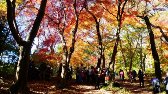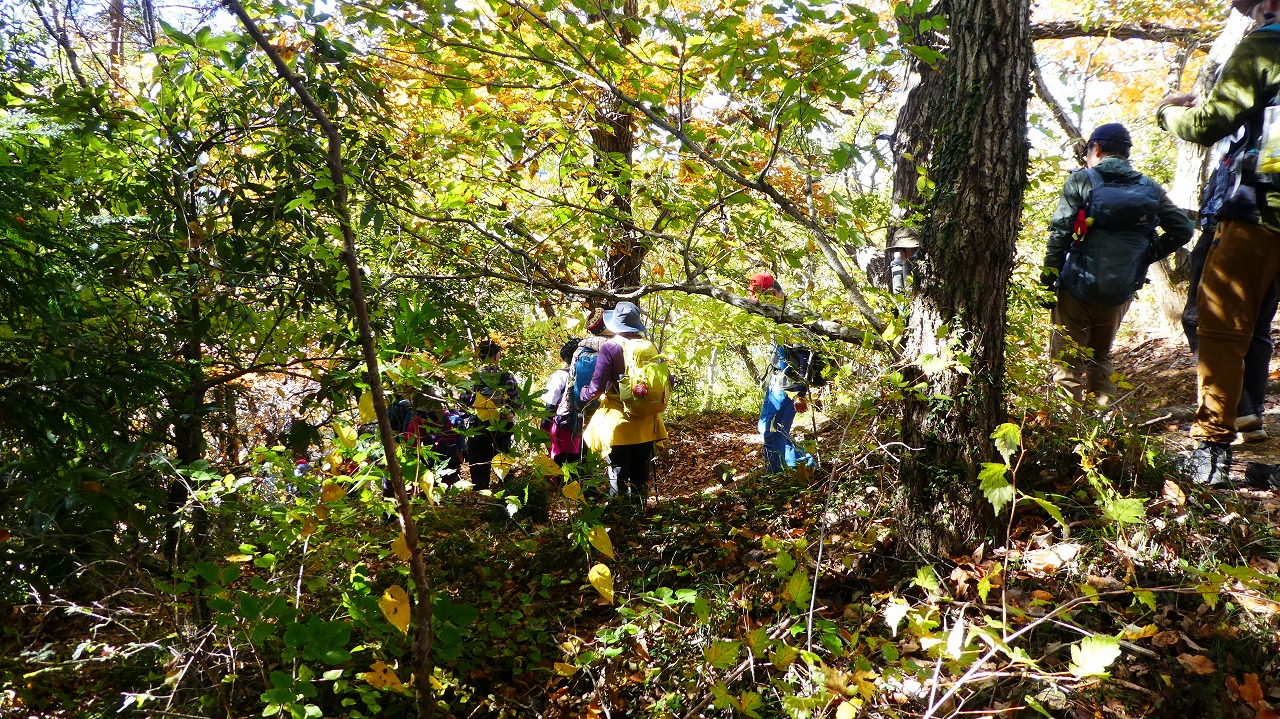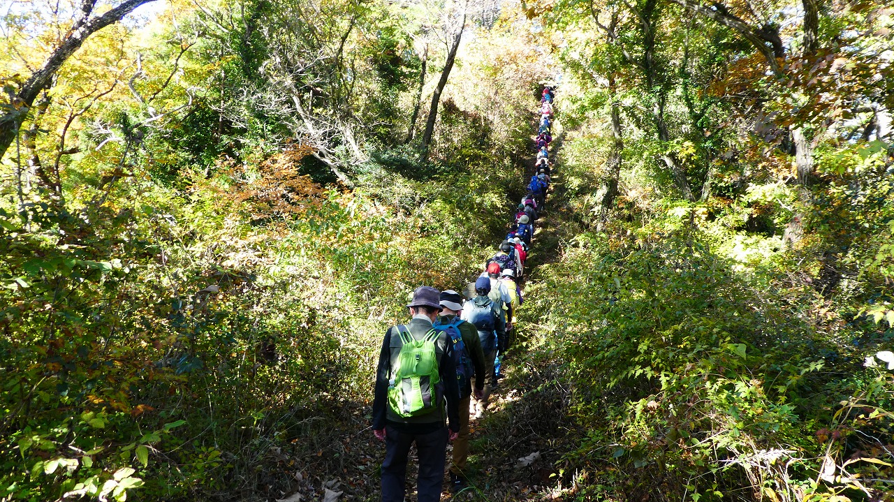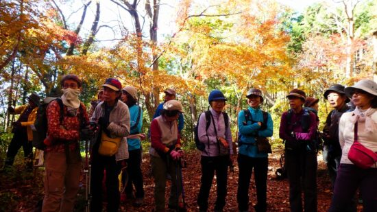 「評議原は小田原攻めの際に片倉、津久井、小松城の武将たちが秀吉にどう降伏するかを相談した場所とされています。この辺りを毎日歩かれているという男性によると今の色付き度は5、上から陽の差す昼が見頃なんだとか。上の雨降龍籠山の展望台からは都内や神奈川のビル群、遠くは赤城山、男体山、房総半島の説明も受けました。おまけは房総半島上にチョコッと頭を出している冨山。来週に登る予定なので少~し嬉しい!