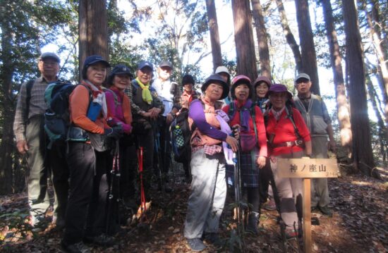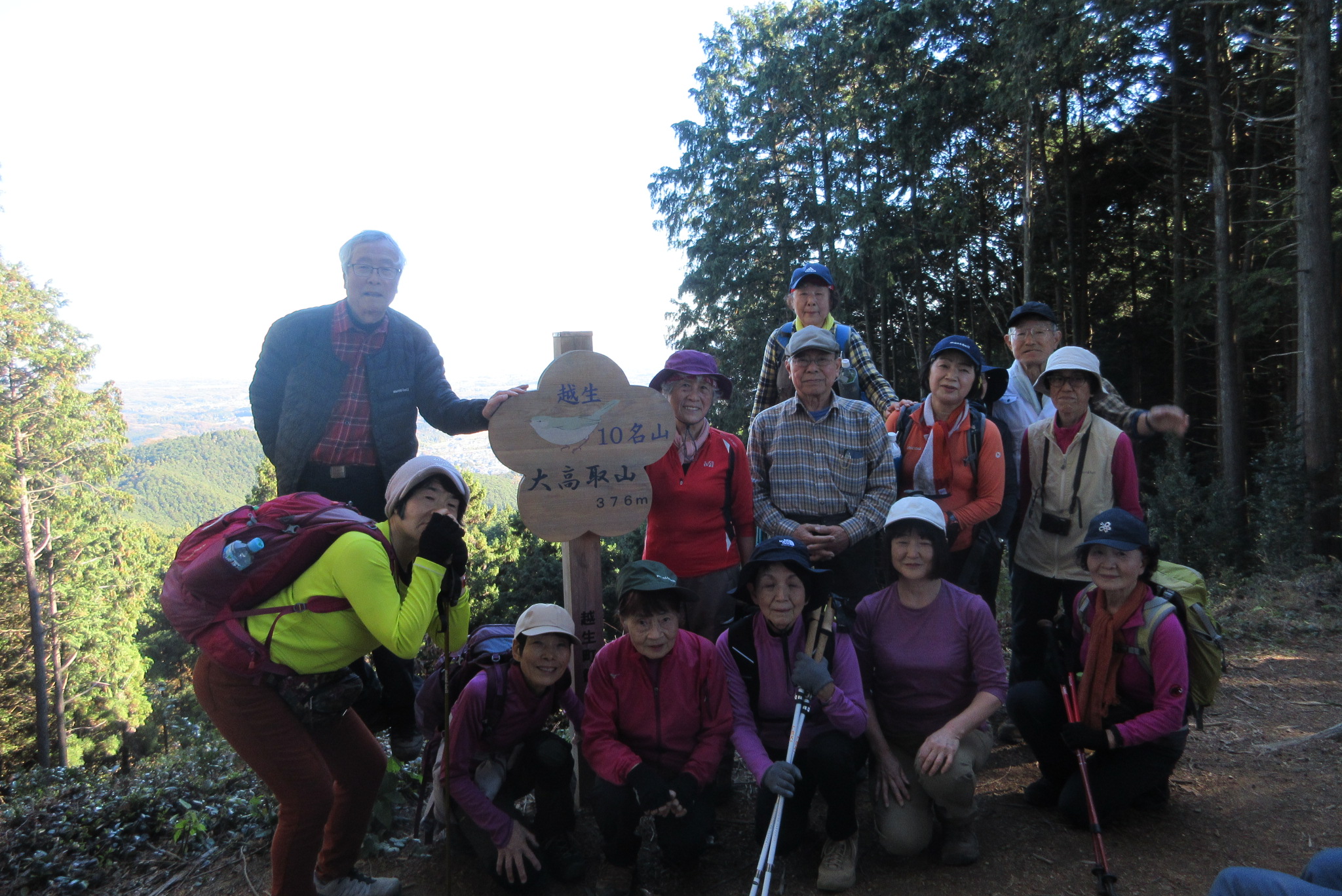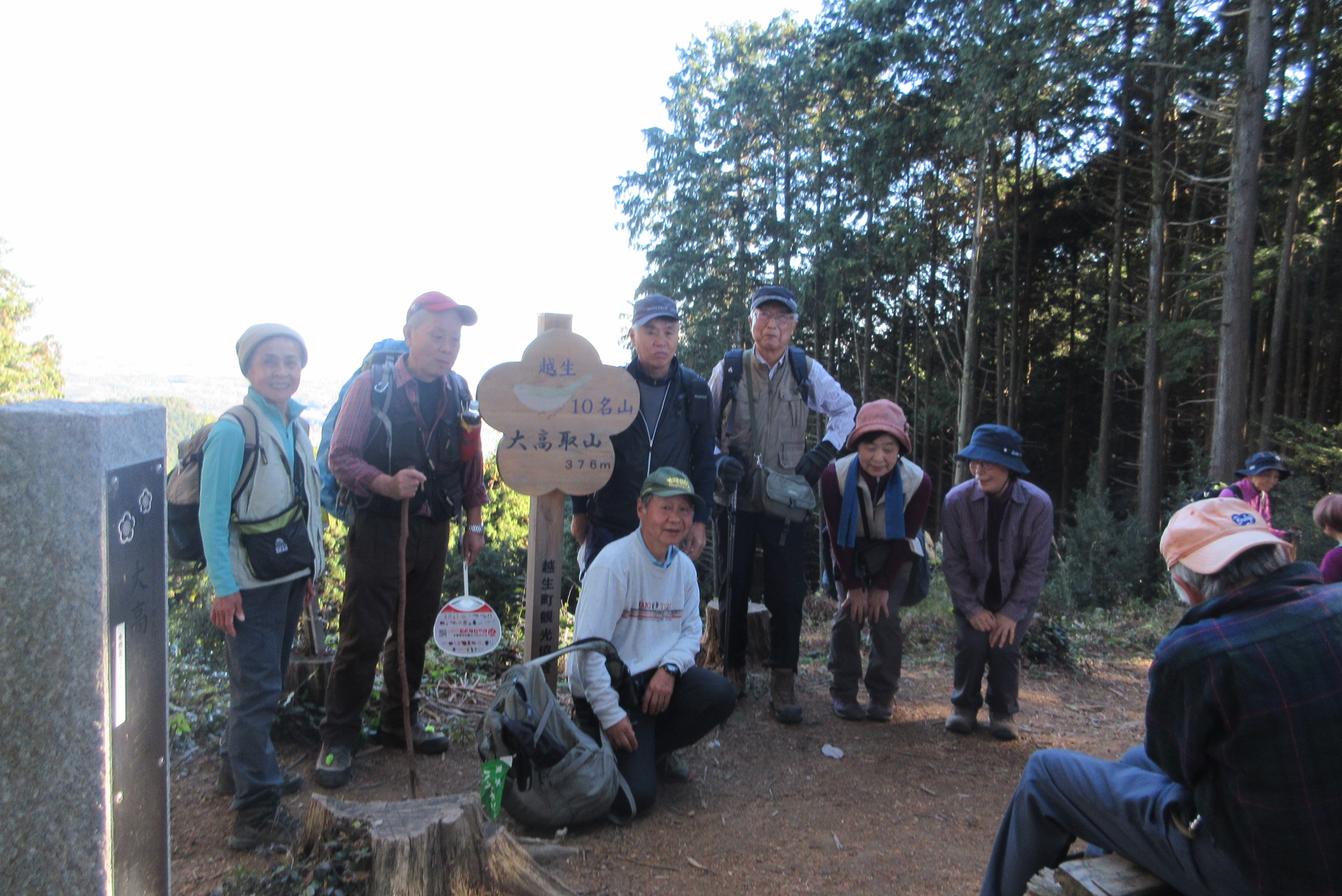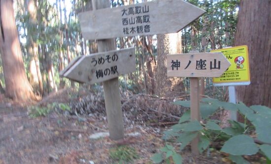 コース:越生駅=小杉バス停 梅の駅 歩行開始 9:50 → 神ノ座山 10:30 → 大高取山 10:45 →