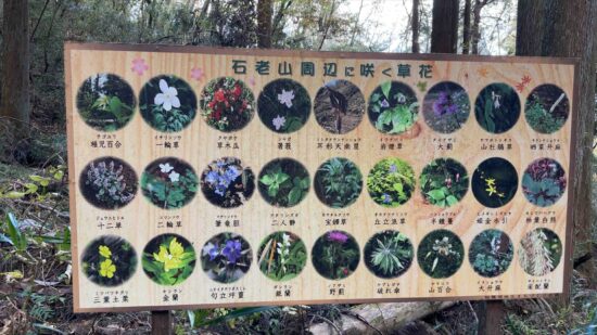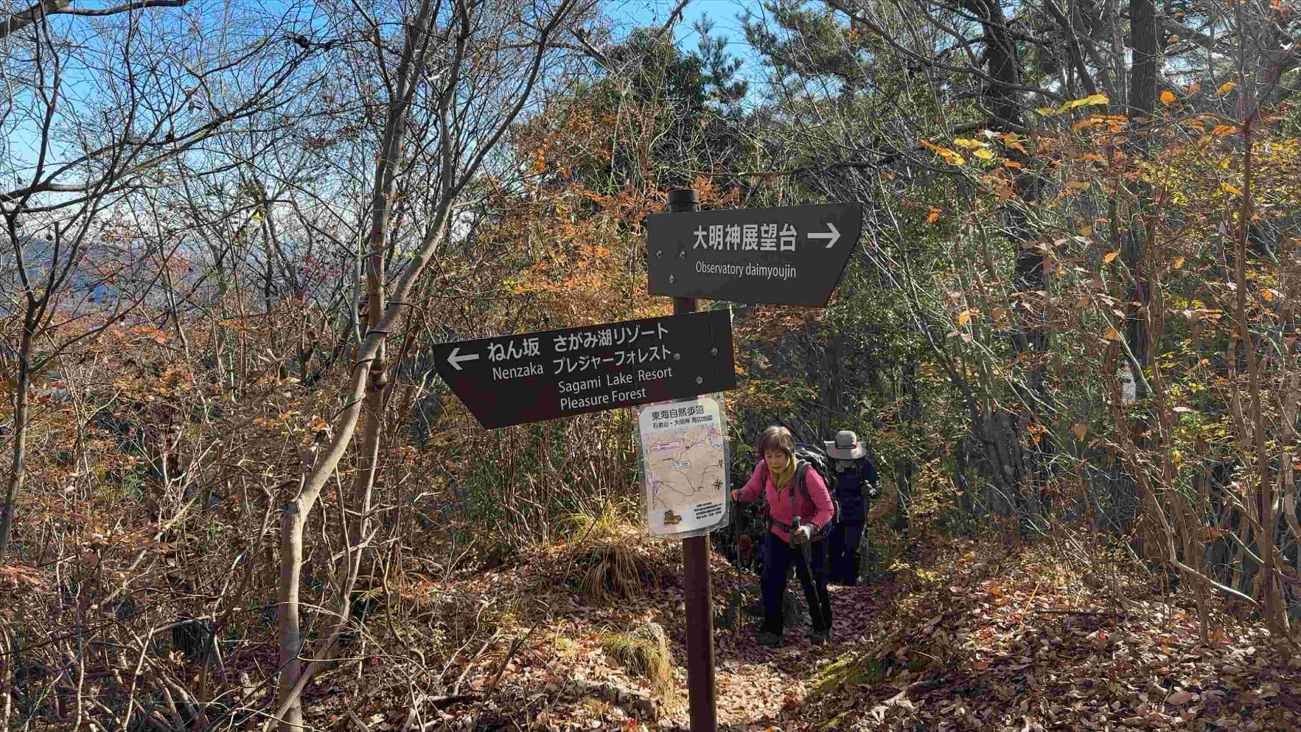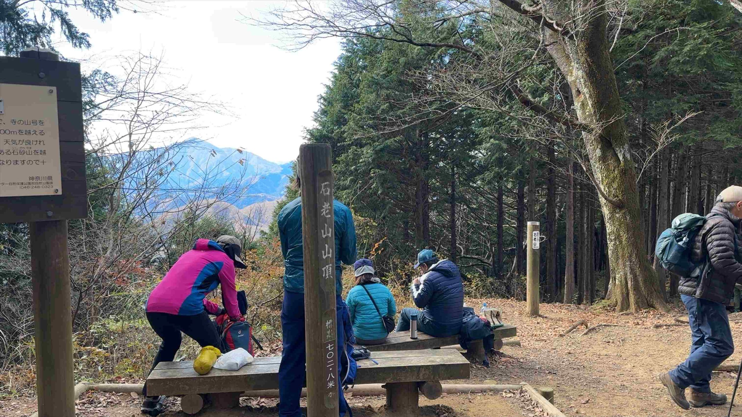 ▼コース : さがみ湖MORIMORI前バス停 09:40 – 10:04 関川公衆トイレ – 10:50 大明神展望台 – 11:08 大明神 – 11:43 東雲山 – 12:00 石老山(昼食)12:30 – 13:00 融合平展望台 – 13:33 顕鏡寺 – 13:50 相模湖病院 – 14:100 唐沢橋 – 14:10 石老山入口バス停 = 相模湖駅