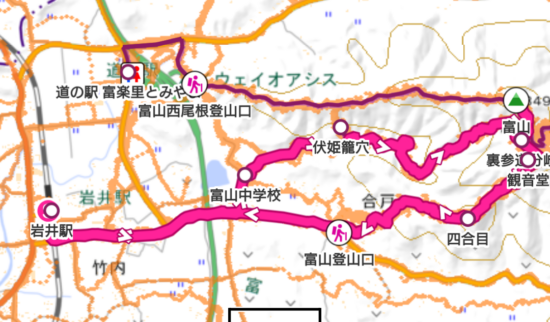 13:20ー富山南峰13:40福満寺14:30ー14:56岩井駅