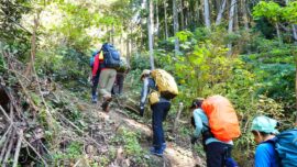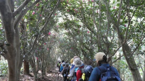 2日目 今日は御殿山。こちらもまだ台風の影響が残ったり、又地元のバス便撤退もあって、往復登山となりましたが、ツバキの出迎えに素晴らしい展望、短いながらも3⃣の登り感があったと思います。