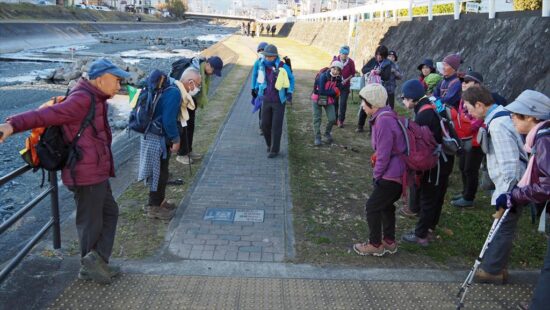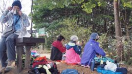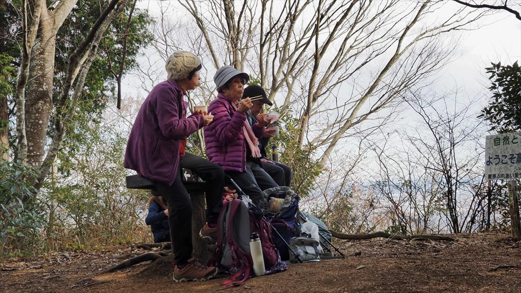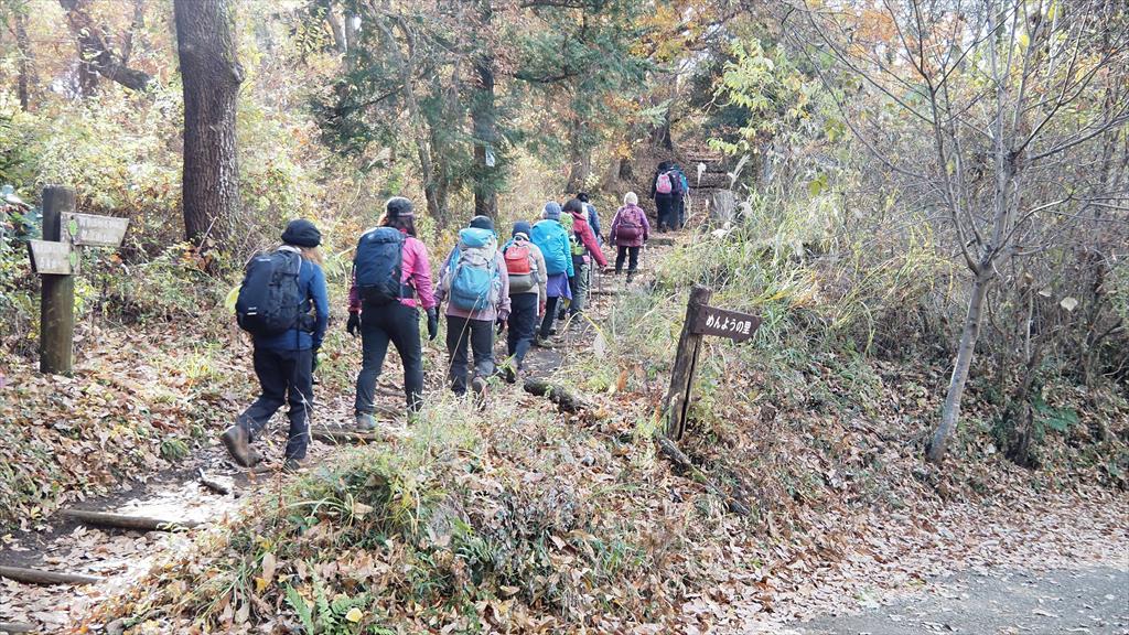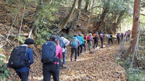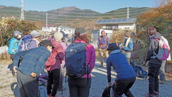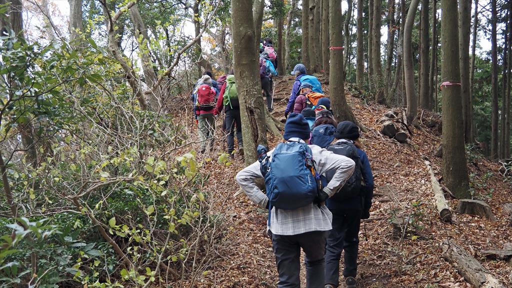 才戸入口バス停で下車。しばらく歩くと、横畑集落の「手打ちそば石庄庵」からぺったんこ ぺったんこと餅ちつきの音が聞こえてきた。ゴルフ場(東京カントリー俱楽部)に沿って林道に入るが道が悪く歩きにぐい、まもなくして不動越えに着く。いくつものビークを越え高取山に着き昼食、 念仏山に向かう、歩きづらい木の根の多い道を急降下・登をくり返して念仏山に、善波峠から弘法山の新設されたデッキで展望を楽しんだ後、権現山から秦野駅で解散しました。 来年もよろしくお願いします。中嶋要一