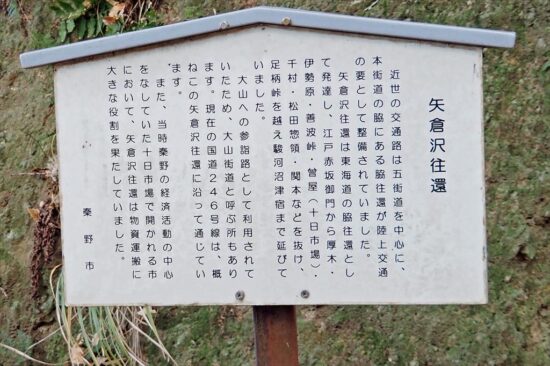 善波峠は秦野市と伊勢原市の境にあり、矢倉沢往還が通っていました。