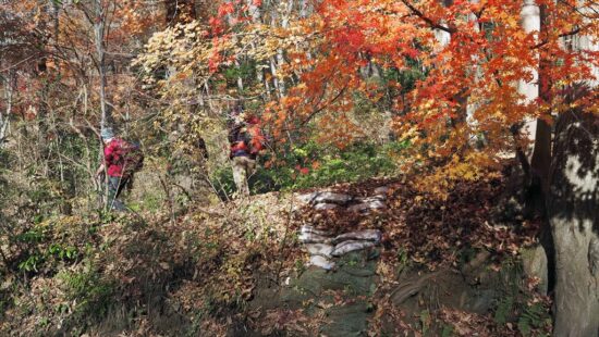 落ち葉が多くあったが、紅葉している木も、ところどころあった。
